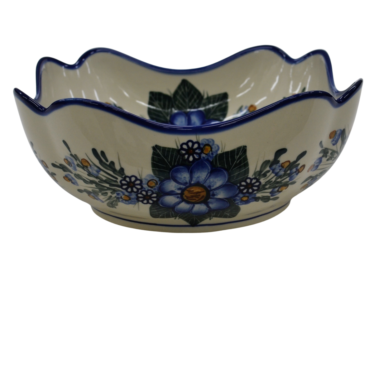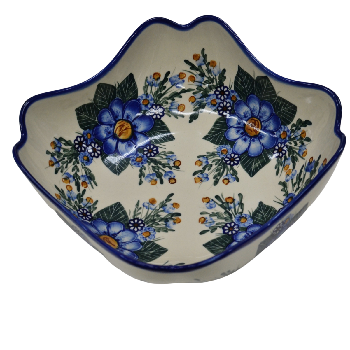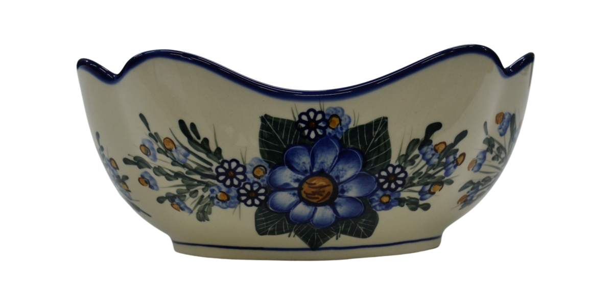 Oryginalny produkt ceramiki bolesławieckiej - ręcznie zdobiona, bolesławiecka miska ceramiczna w kształcie kwiatu tulipana o pojemności aż 2,5 litra, idealna do podawania i przechowywania potraw.