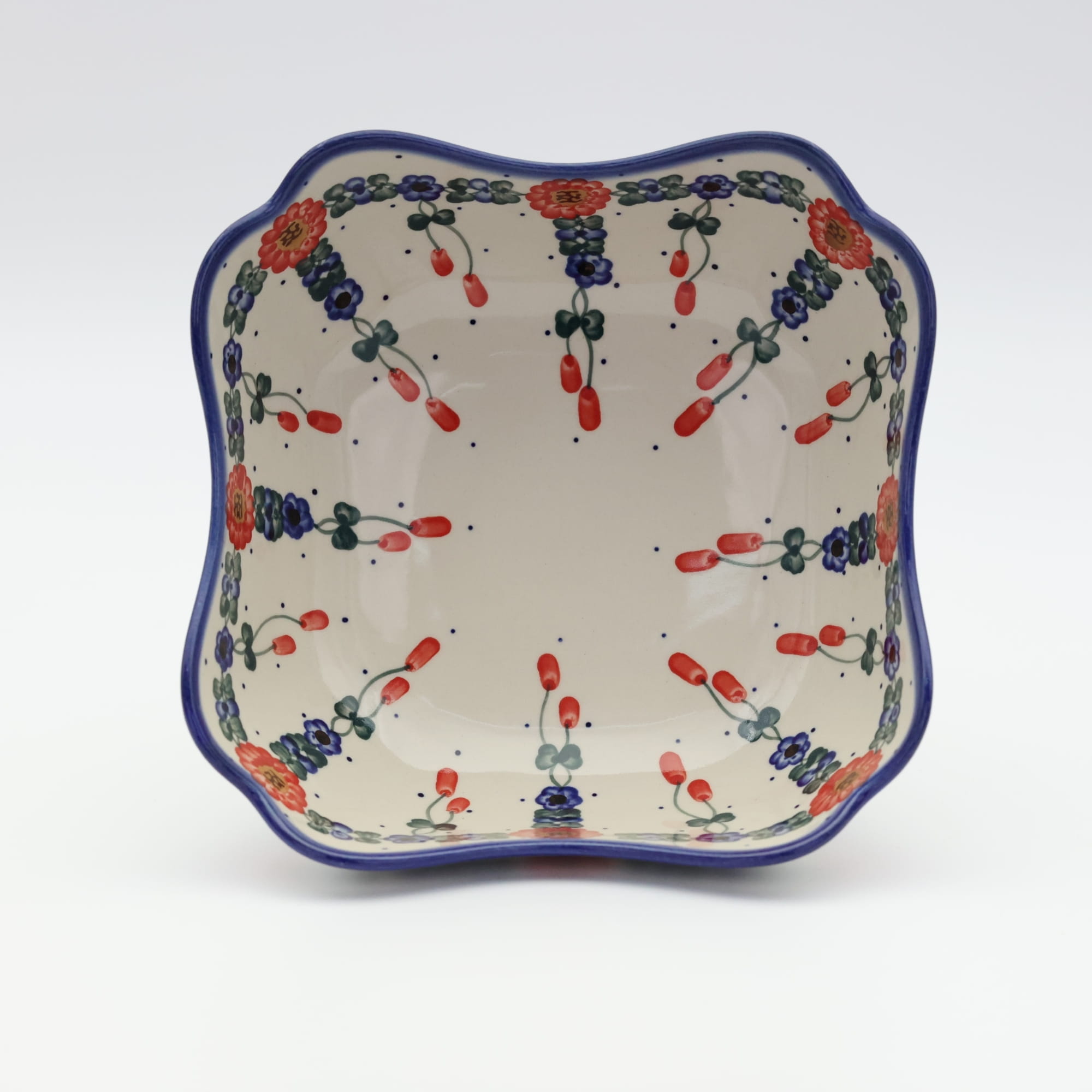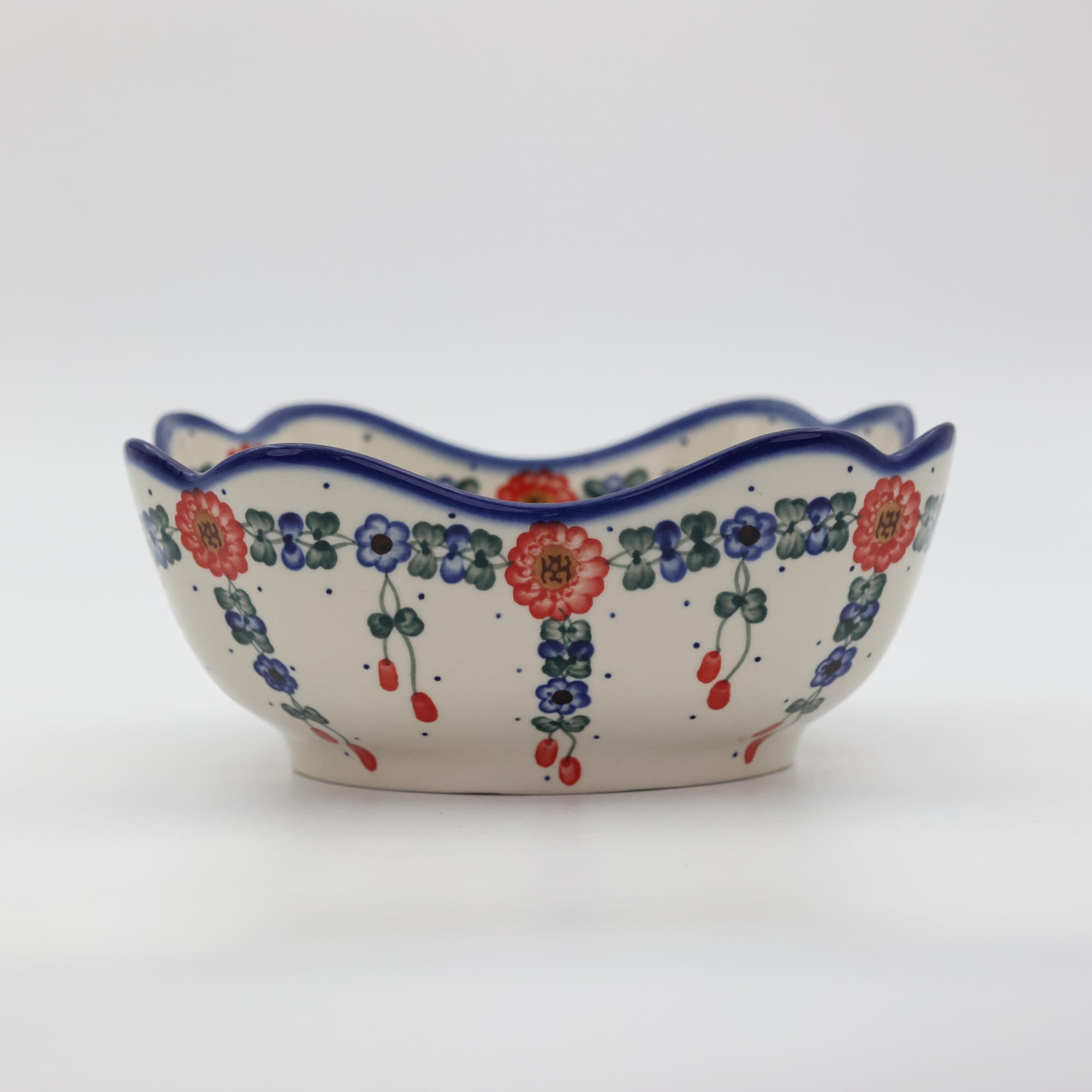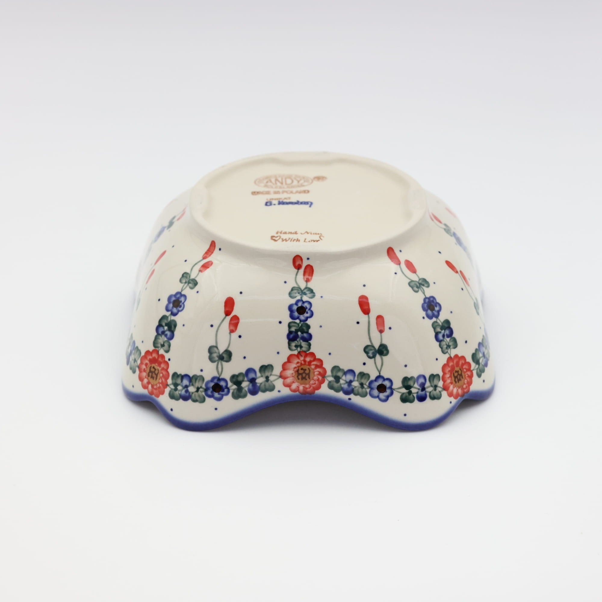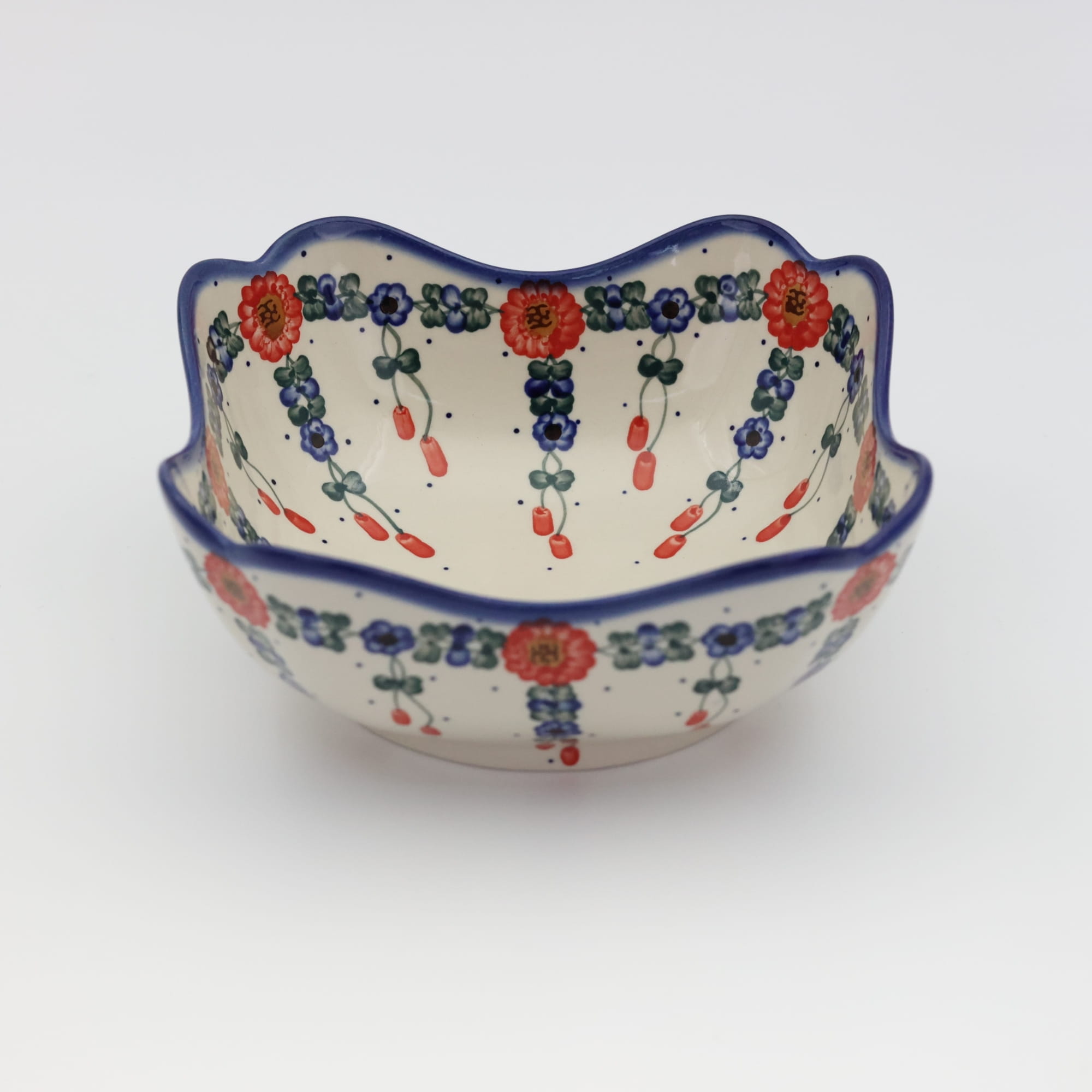 Oryginalny produkt ceramiki bolesławieckiej - ręcznie zdobiona, bolesławiecka miska ceramiczna w kształcie kwiatu tulipana o pojemności aż 1,3 litra, idealna do podawania i przechowywania potraw.