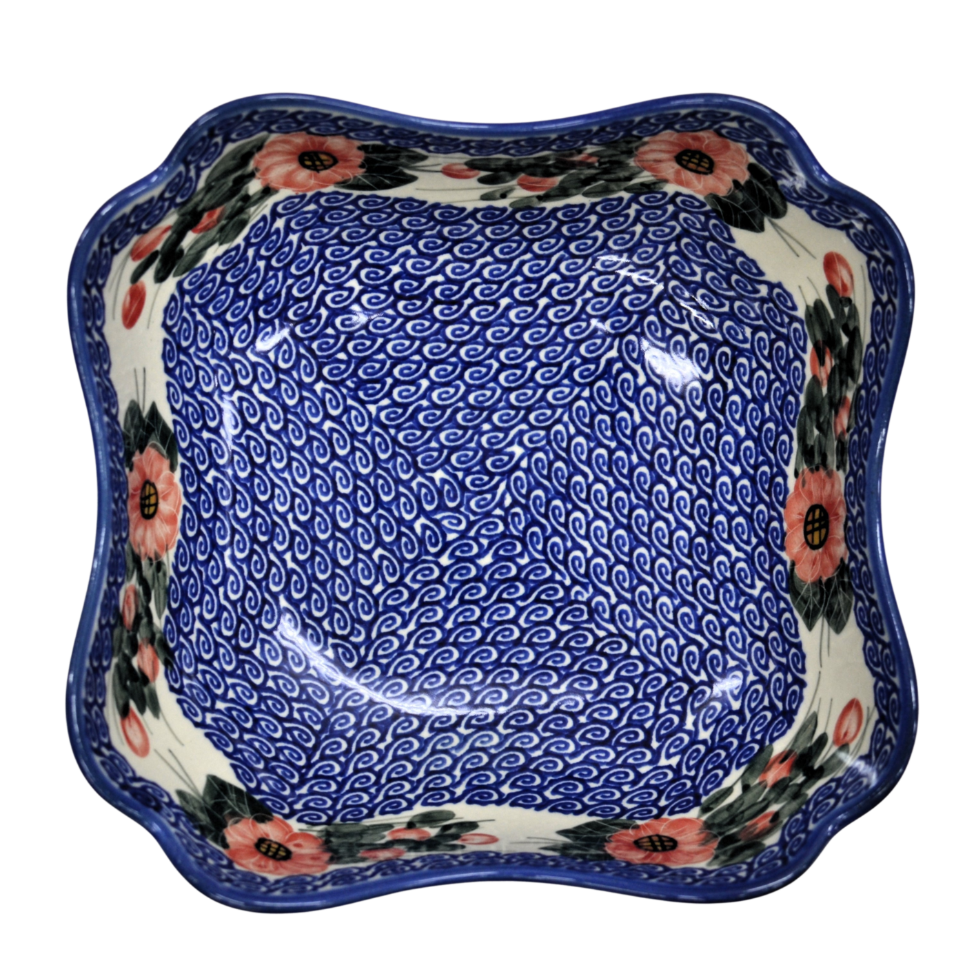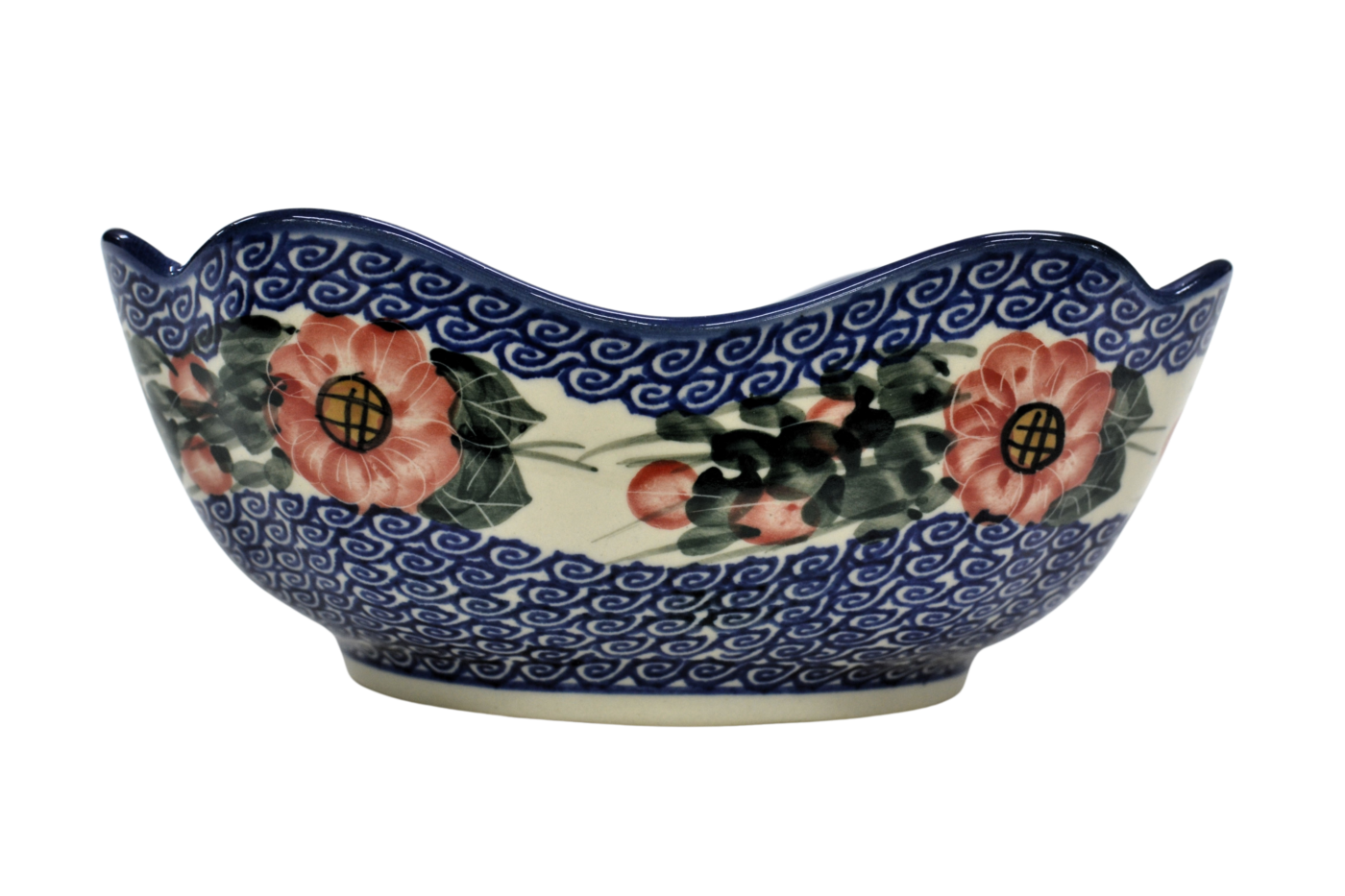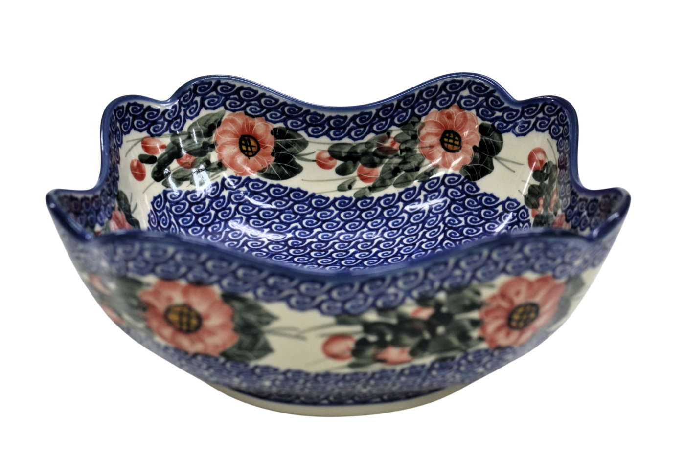 Oryginalny produkt ceramiki bolesławieckiej - ręcznie zdobiona, bolesławiecka miska ceramiczna w kształcie kwiatu tulipana o pojemności aż 1,3 litra, idealna do podawania i przechowywania potraw.