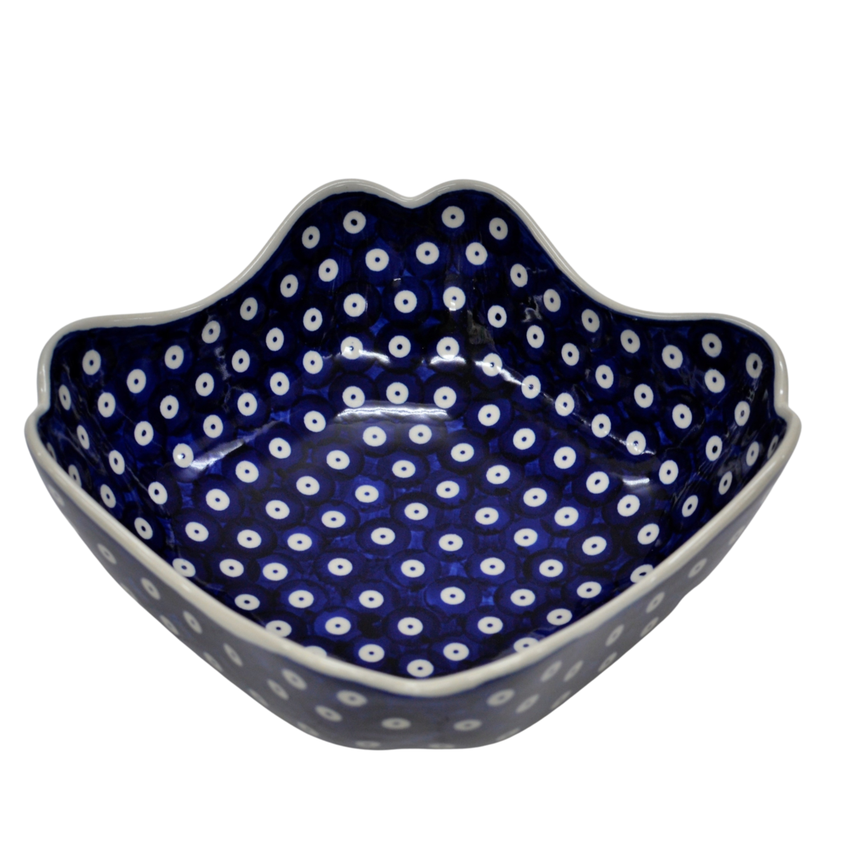 Oryginalny produkt ceramiki bolesławieckiej - ręcznie zdobiona, bolesławiecka miska ceramiczna w kształcie kwiatu tulipana o pojemności aż 1,3 litra, idealna do podawania i przechowywania potraw.