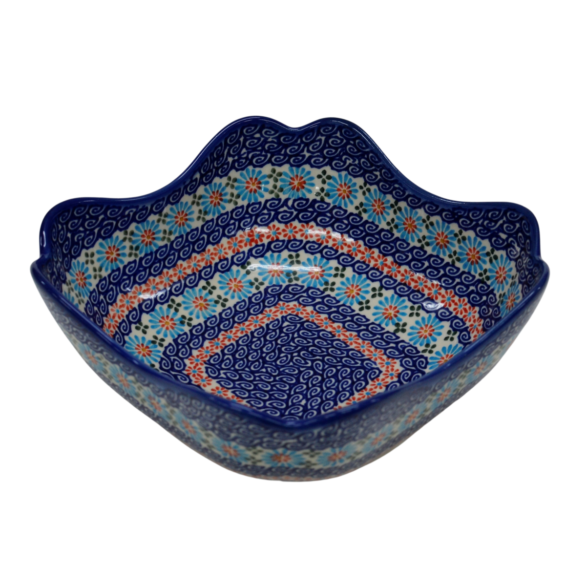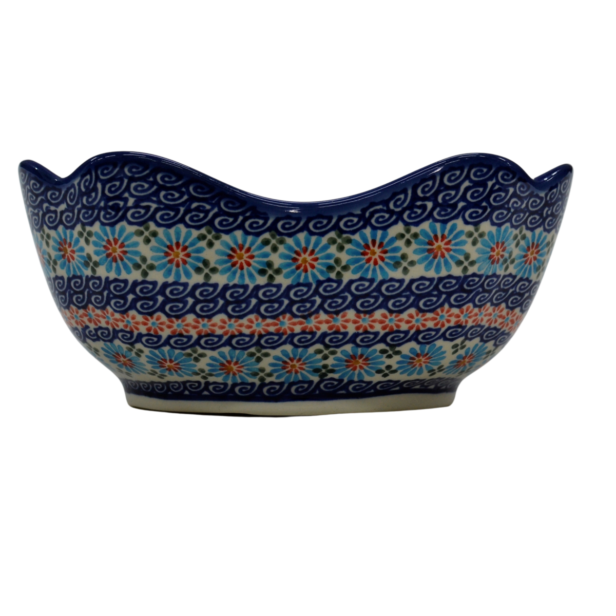 Oryginalny produkt ceramiki bolesławieckiej - ręcznie zdobiona, bolesławiecka miska ceramiczna w kształcie kwiatu tulipana o pojemności aż 1,3 litra, idealna do podawania i przechowywania potraw.
