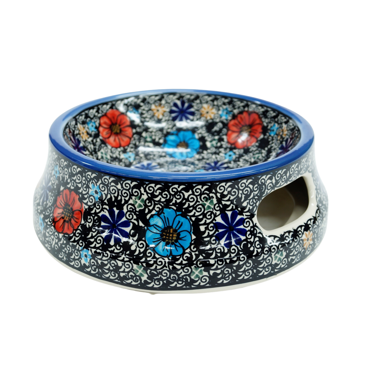 Oryginalny produkt ceramiki bolesławieckiej - miska dla psa lub kota, duża miska o średnicy 26,5 cm. Miska jest ręcznie malowana i wyprodukowana z oryginalnej kamionki bolesławieckiej. Każda dekoracja ceramiki artystycznej z naszej rodzinnej manufaktury, ANDY Ceramika, powstała z najwyższą dbałością o detale (ręcznie nakładane stempelki i z pasją malowane dekoracje kwiatowe).