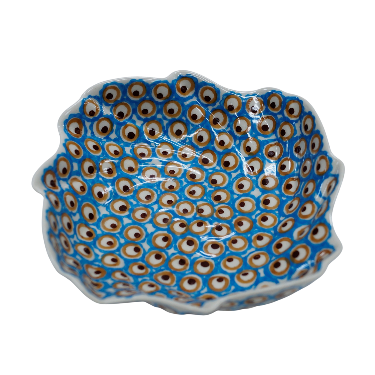 Niech Twoja potrawa będzie podana pięknie i smakuje wykwitnie dzięki artystycznym naczyniom ceramiki Bolesławieckiej z rodzinnej manufaktury, CERAMIKA ANDY. Miska jest ręcznie malowana i wyprodukowana z oryginalnej kamionki bolesławieckiej. Znakomicie nadaje się do podawania i przechowywania. Spisze się znakomicie jako naczynie do owoców, warzyw, słodyczy.