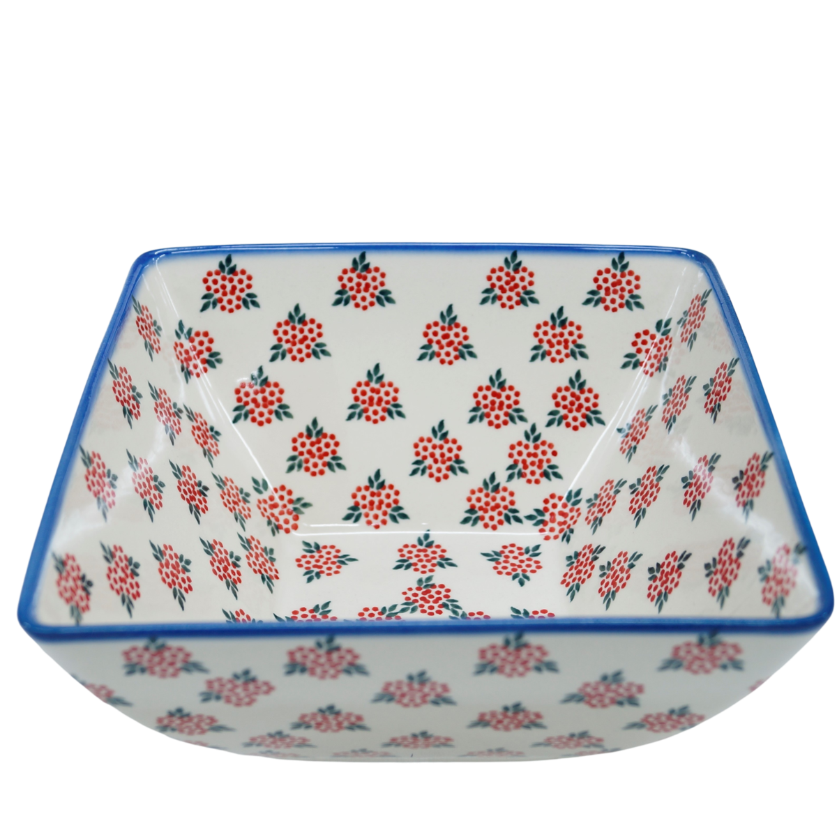 Miska kwadratowa głęboka wykonana w bolesławieckiej manufakturze ceramiki artystycznej. Miska ceramiczna o pojemności 1,9 l o oryginalnym kształcie kwadratu. Designerska forma i ręczne, tradycyjne stempelkowe zdobienia podszkliwne sprawiają, że miska wyróżnia się na stole Twojej jadalni czy blacie kuchennym. Ceramiczna miska posłuży podczas przygotowywania czy przechowywania posiłków.