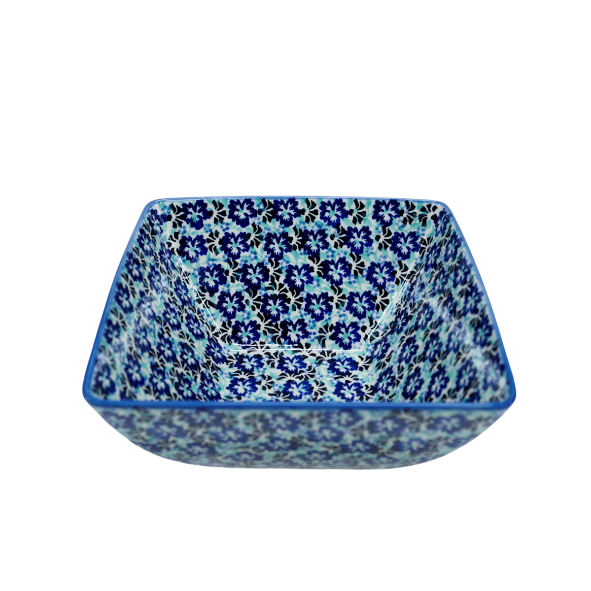 Miska kwadratowa głęboka wykonana w bolesławieckiej manufakturze ceramiki artystycznej. Miska ceramiczna o pojemności 1,9 l o oryginalnym kształcie kwadratu. Designerska forma i ręczne, tradycyjne stempelkowe zdobienia podszkliwne sprawiają, że miska wyróżnia się na stole Twojej jadalni czy blacie kuchennym. Ceramiczna miska posłuży podczas przygotowywania czy przechowywania posiłków.