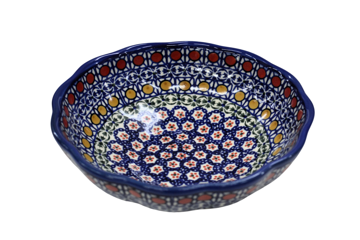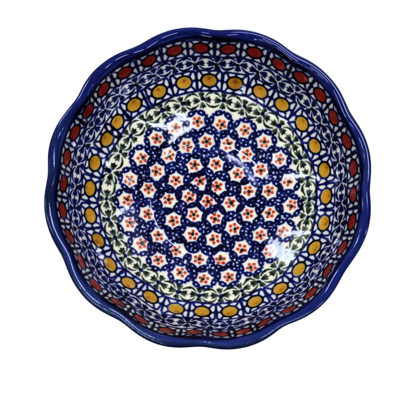 Oryginalny produkt ceramiki bolesławieckiej – miska kwiatek I, idealna do podawania i przechowywania potraw. Niech Twoja potrawa będzie podana pięknie i smakuje wykwitnie dzięki artystycznym naczyniom ceramiki Bolesławieckiej z rodzinnej manufaktury, CERAMIKA ANDY.