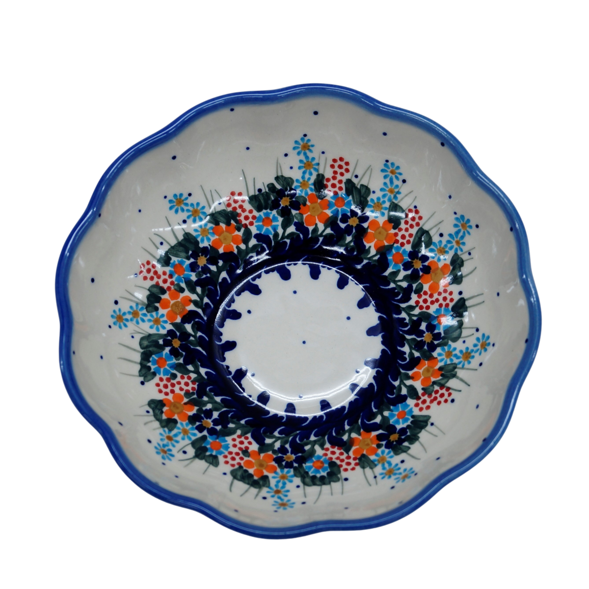 Oryginalny produkt ceramiki bolesławieckiej – miska kwiatek I, idealna do podawania i przechowywania potraw. Niech Twoja potrawa będzie podana pięknie i smakuje wykwitnie dzięki artystycznym naczyniom ceramiki Bolesławieckiej z rodzinnej manufaktury, CERAMIKA ANDY.