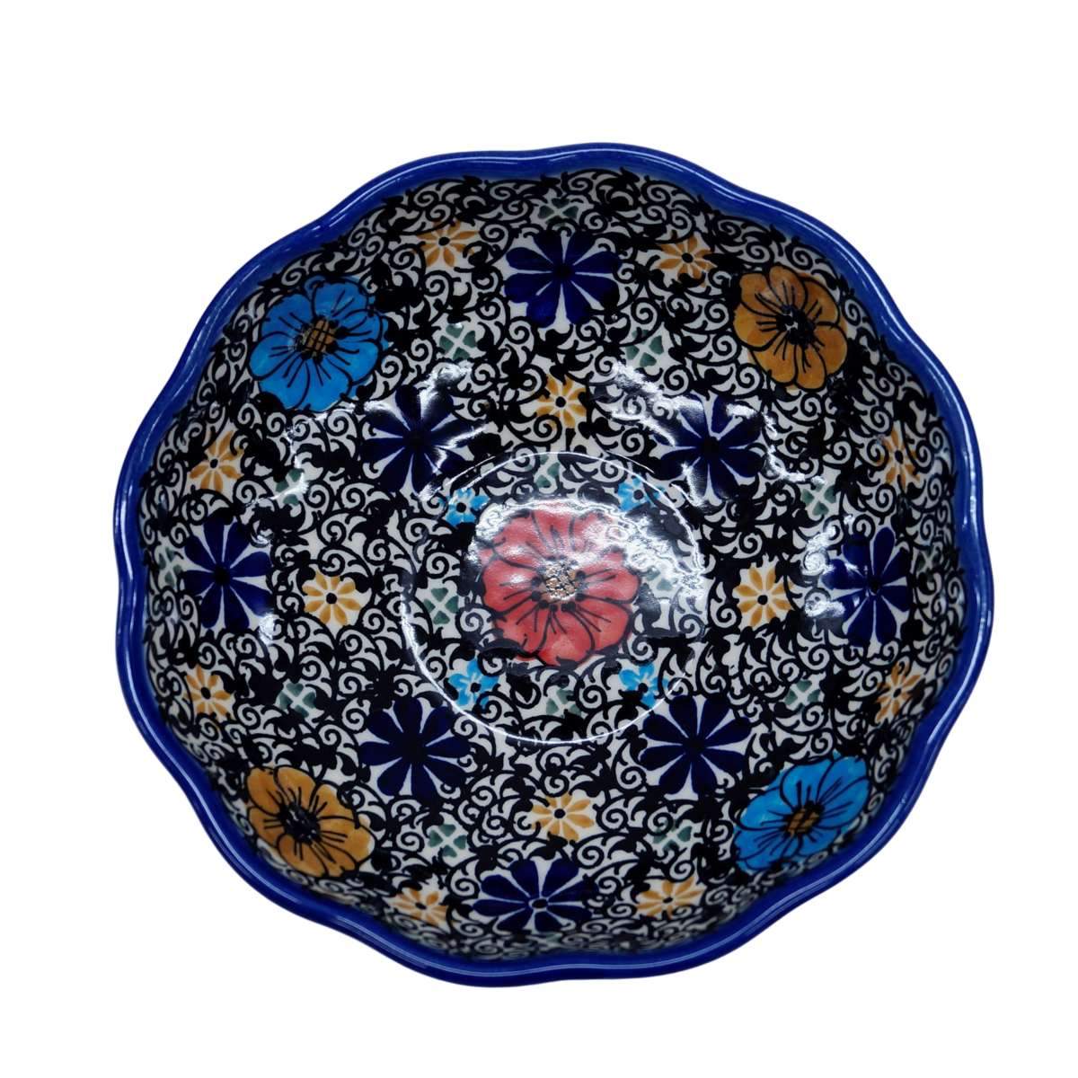 Oryginalny produkt ceramiki bolesławieckiej – miska kwiatek I, idealna do podawania i przechowywania potraw. Niech Twoja potrawa będzie podana pięknie i smakuje wykwitnie dzięki artystycznym naczyniom ceramiki Bolesławieckiej z rodzinnej manufaktury, CERAMIKA ANDY.