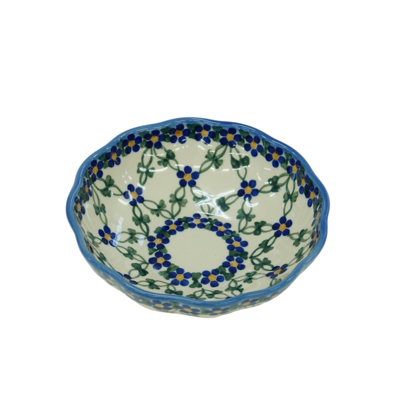 Oryginalny produkt ceramiki bolesławieckiej – miska kwiatek II, idealna do podawania i przechowywania potraw. Niech Twoja potrawa będzie podana pięknie i smakuje wykwitnie dzięki artystycznym naczyniom ceramiki Bolesławieckiej z rodzinnej manufaktury, CERAMIKA ANDY.