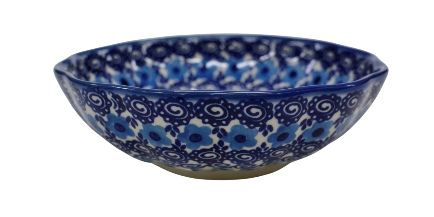 Oryginalny produkt ceramiki bolesławieckiej – miska kwiatek II, idealna do podawania i przechowywania potraw. Niech Twoja potrawa będzie podana pięknie i smakuje wykwitnie dzięki artystycznym naczyniom ceramiki Bolesławieckiej z rodzinnej manufaktury, CERAMIKA ANDY.