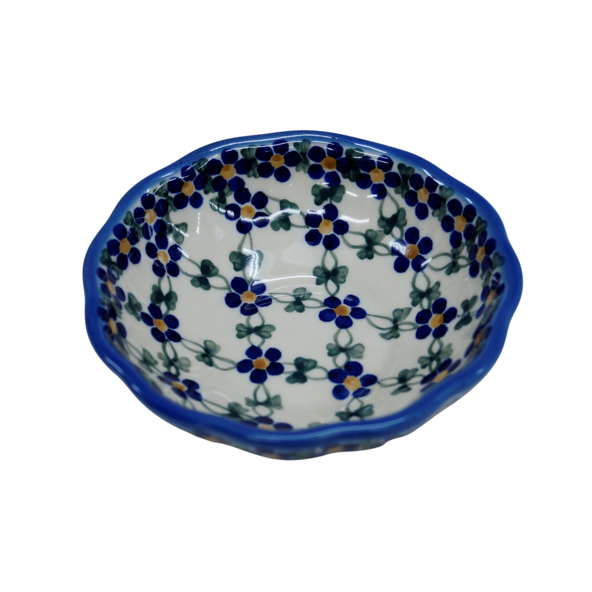 Oryginalny produkt ceramiki bolesławieckiej – miska kwiatek III, idealna do podawania i przechowywania potraw. Niech Twoja potrawa będzie podana pięknie i smakuje wykwitnie dzięki artystycznym naczyniom ceramiki Bolesławieckiej z rodzinnej manufaktury, CERAMIKA ANDY.