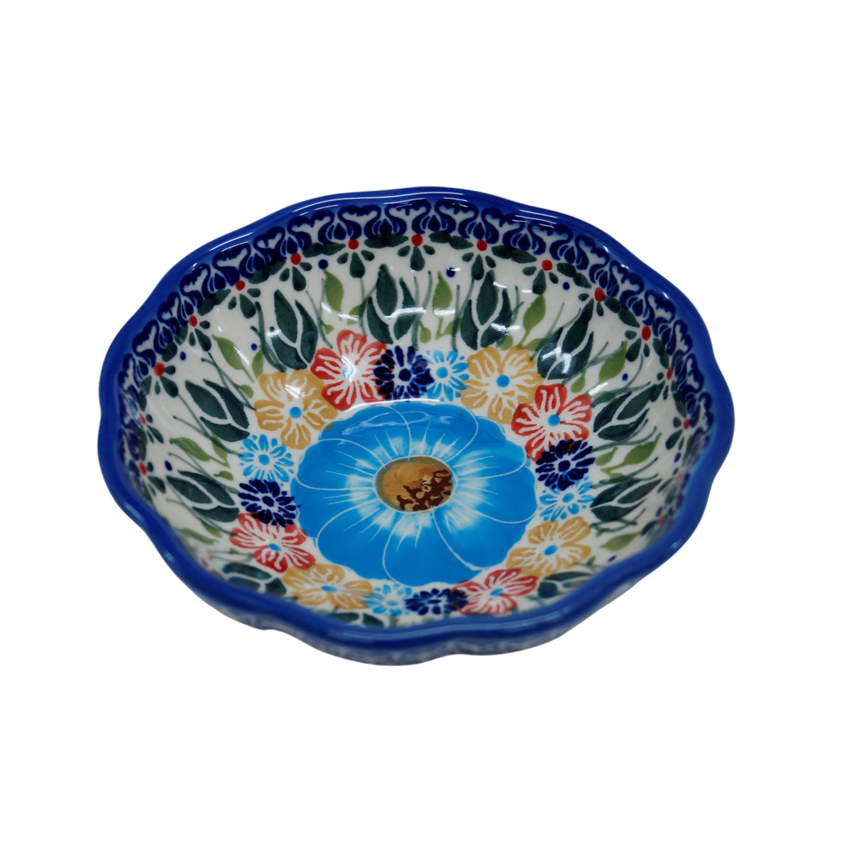 Oryginalny produkt ceramiki bolesławieckiej – miska kwiatek III, idealna do podawania i przechowywania potraw. Niech Twoja potrawa będzie podana pięknie i smakuje wykwitnie dzięki artystycznym naczyniom ceramiki Bolesławieckiej z rodzinnej manufaktury, CERAMIKA ANDY.