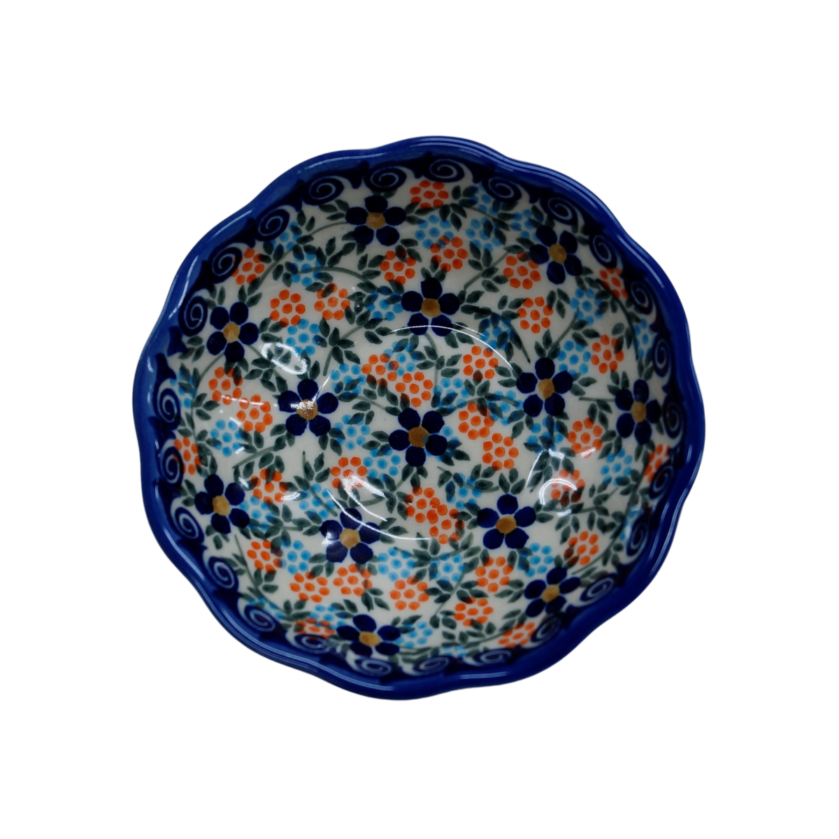 Oryginalny produkt ceramiki bolesławieckiej – miska kwiatek III, idealna do podawania i przechowywania potraw. Niech Twoja potrawa będzie podana pięknie i smakuje wykwitnie dzięki artystycznym naczyniom ceramiki Bolesławieckiej z rodzinnej manufaktury, CERAMIKA ANDY.