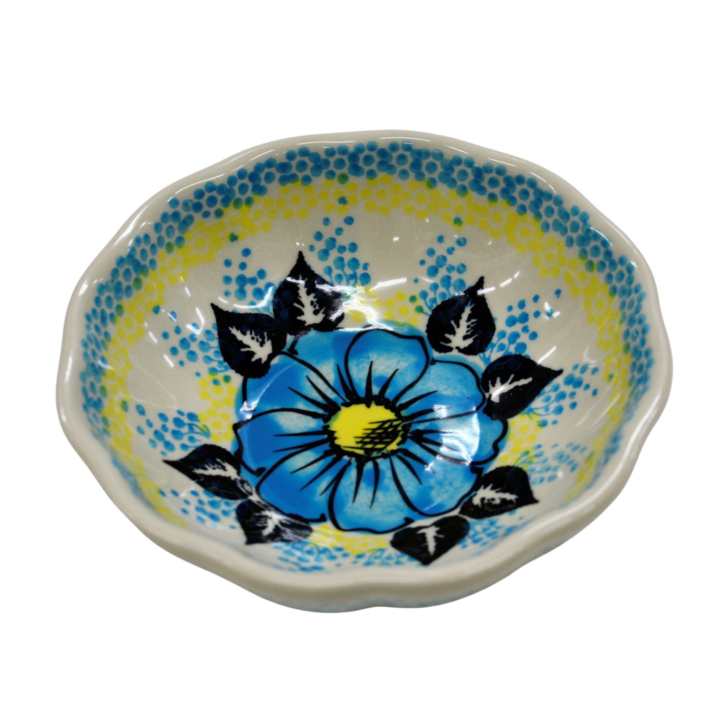 Oryginalny produkt ceramiki bolesławieckiej – miska kwiatek III, idealna do podawania i przechowywania potraw. Niech Twoja potrawa będzie podana pięknie i smakuje wykwitnie dzięki artystycznym naczyniom ceramiki Bolesławieckiej z rodzinnej manufaktury, CERAMIKA ANDY.