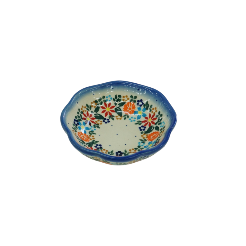 Oryginalny produkt ceramiki bolesławieckiej – miska kwiatek IV, idealna do podawania i przechowywania potraw. Niech Twoja potrawa będzie podana pięknie i smakuje wykwitnie dzięki artystycznym naczyniom ceramiki Bolesławieckiej z rodzinnej manufaktury, CERAMIKA ANDY.