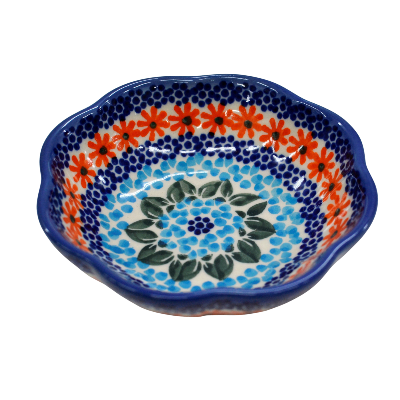 Oryginalny produkt ceramiki bolesławieckiej – miska kwiatek IV, idealna do podawania i przechowywania potraw. Niech Twoja potrawa będzie podana pięknie i smakuje wykwitnie dzięki artystycznym naczyniom ceramiki Bolesławieckiej z rodzinnej manufaktury, CERAMIKA ANDY.