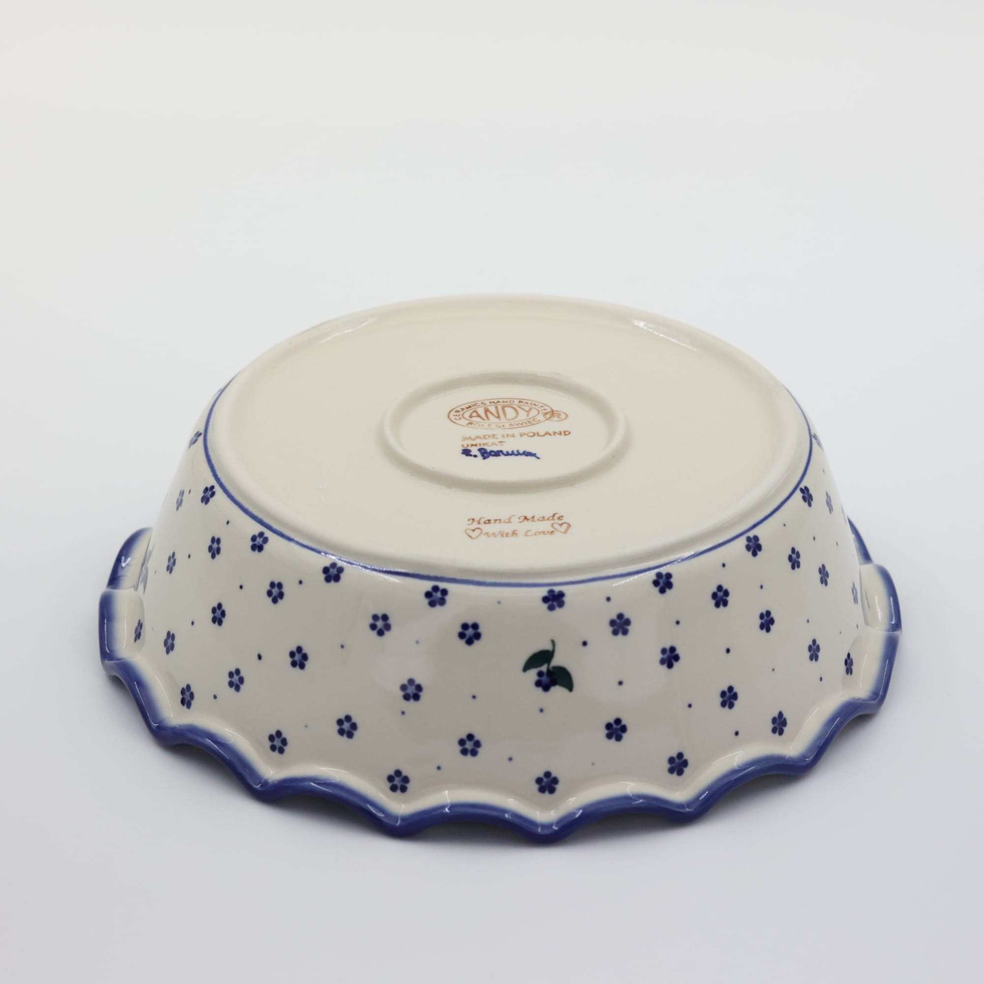 Oryginalny produkt ceramiki bolesławieckiej - miska, naczynie ceramiczne okrągłe z rantem zwanym FALA, o średnicy 26 cm i wysokości 7,5 cm.