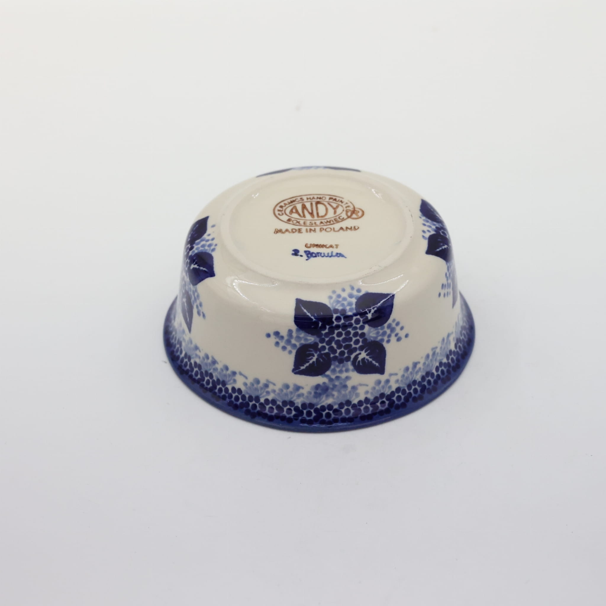 Oryginalny produkt ceramiki bolesławieckiej - miska, bulionówka, flaczarka o średnicy 13,5 cm, idealna do podawania i przechowywania potraw. Niech Twoja potrawa będzie podana pięknie i smakuje wykwitnie dzięki artystycznym naczyniom ceramiki Bolesławieckiej z rodzinnej manufaktury, CERAMIKA ANDY.