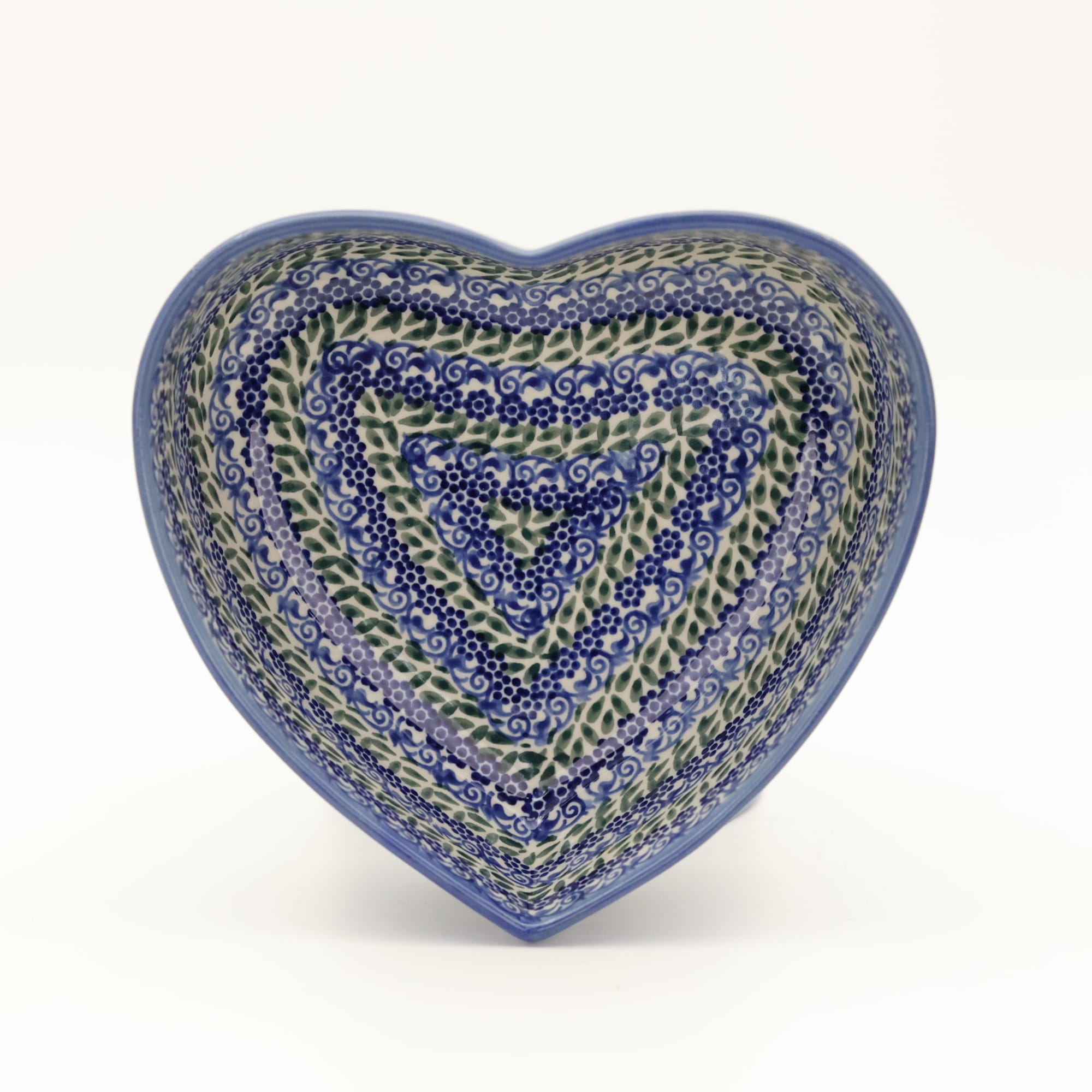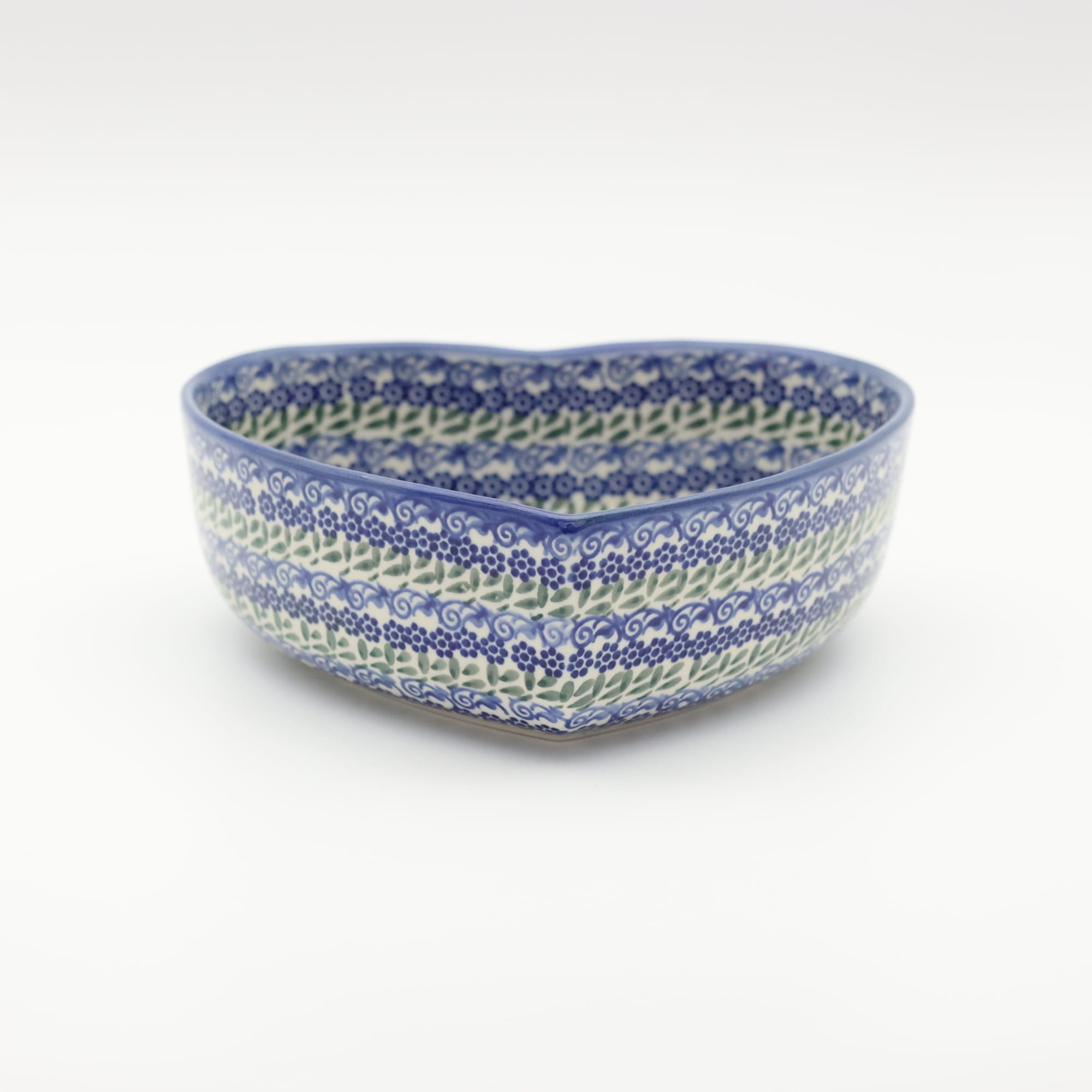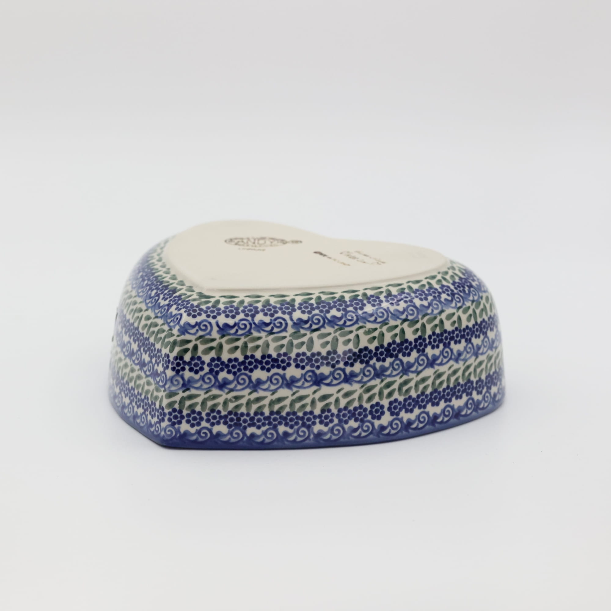 Ręcznie zdobiona kamionkowa miska o kształcie serce, idealna do podawania i przechowywania potraw. Niech Twoja potrawa przygotowana będzie podana pięknie i smakuje wykwitnie dzięki artystycznym naczyniom ceramiki Bolesławieckiej z rodzinnej manufaktury, CERAMIKA ANDY, ręcznie zdobionym podszkliwnie.