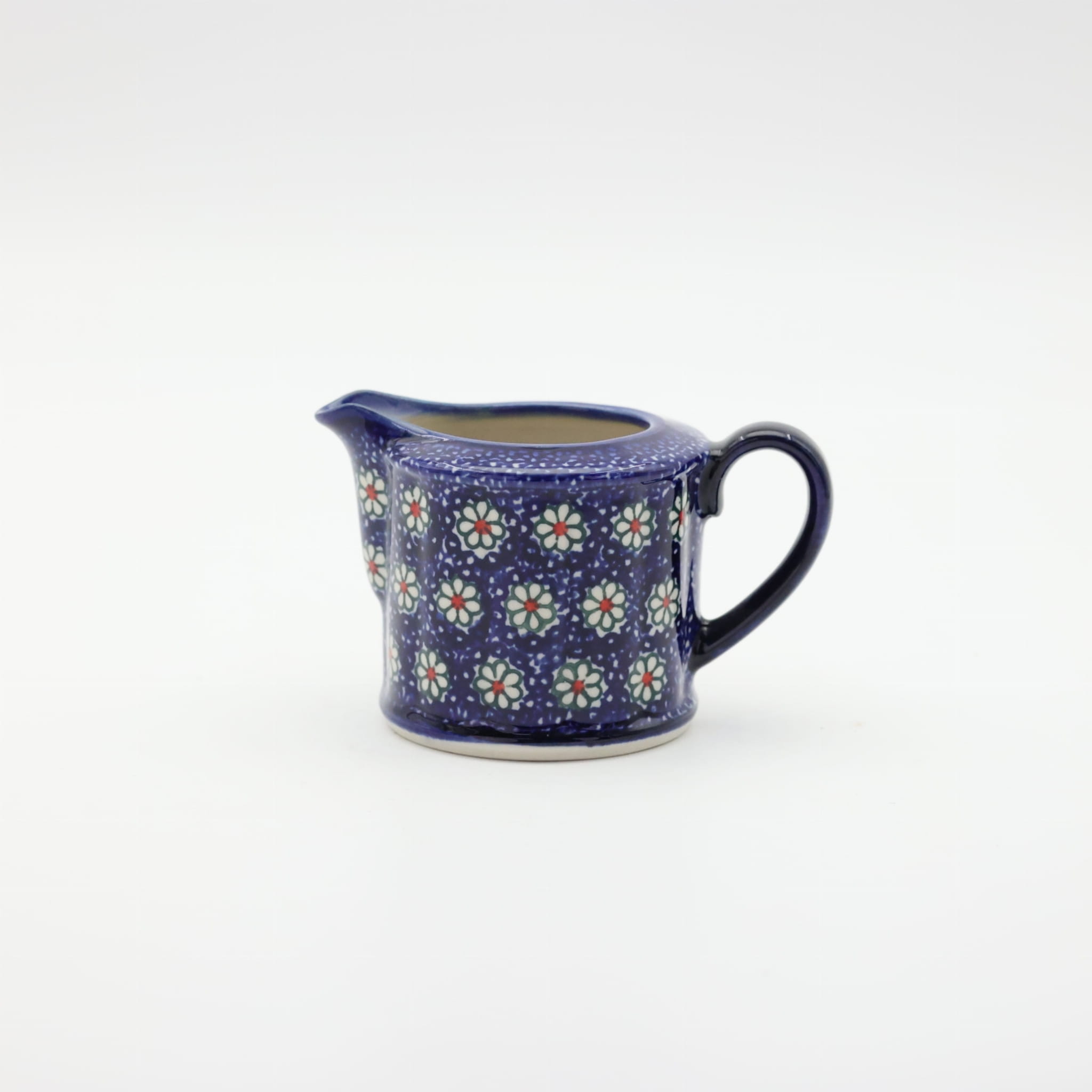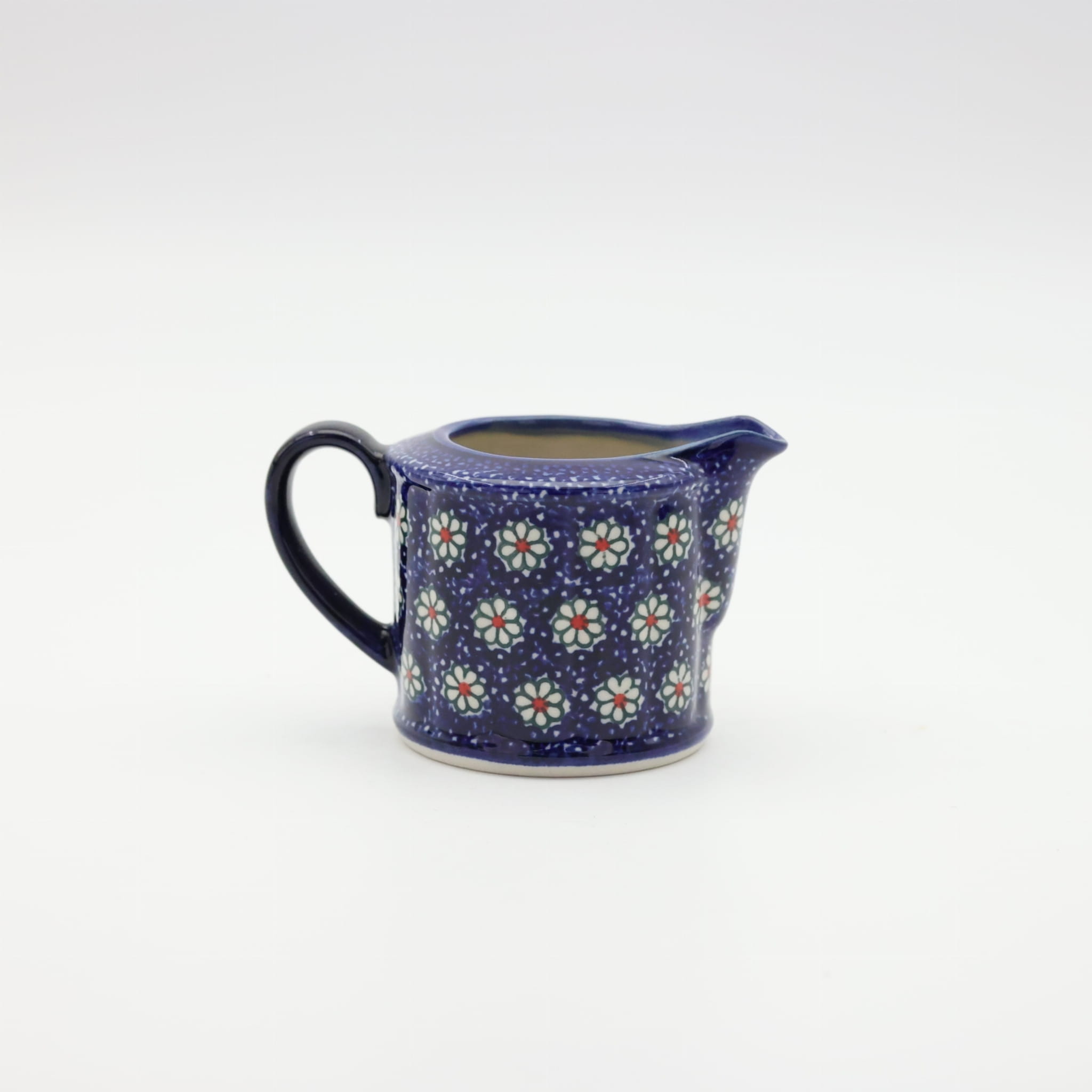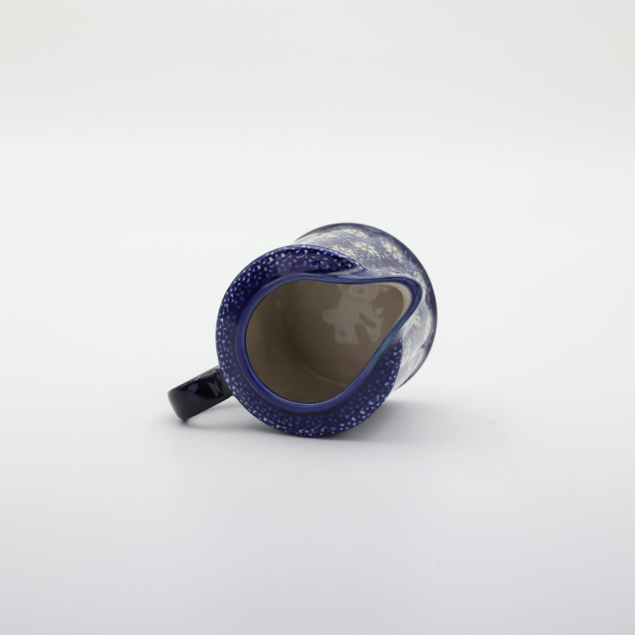 Mlecznik ceramiczny ręcznie malowany o pojemności 200 ml, z uchem do wygodnego przenoszenia i dziubkiem do łatwego nalewania mleka.
