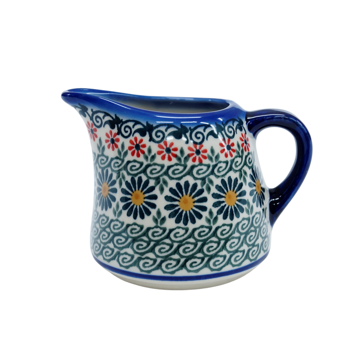 Mlecznik ceramiczny BEL, ręcznie malowany o pojemności 250 ml, z uchem do wygodnego przenoszenia i dziubkiem do łatwego nalewania mleka.