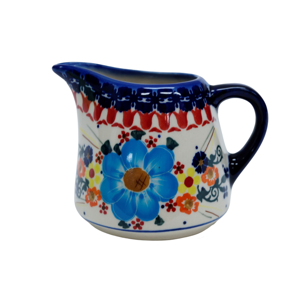 Mlecznik ceramiczny BEL, ręcznie malowany o pojemności 250 ml, z uchem do wygodnego przenoszenia i dziubkiem do łatwego nalewania mleka.