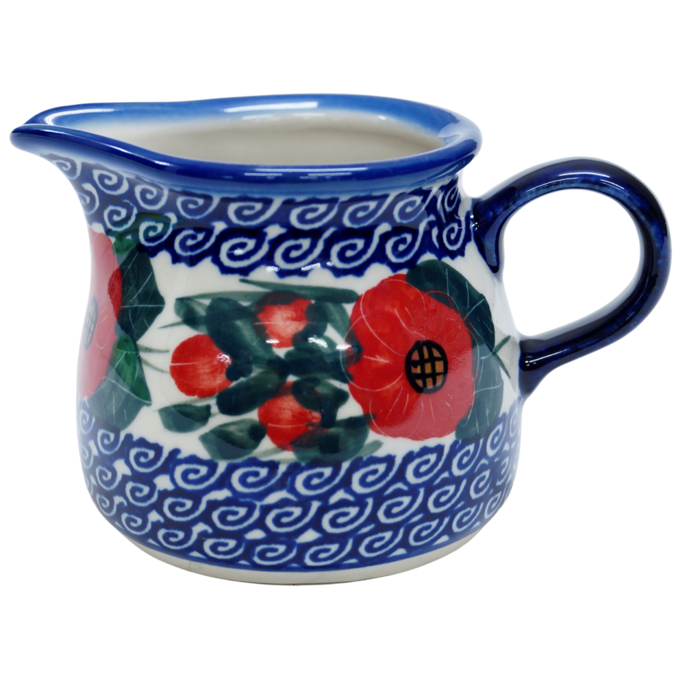 Mlecznik (dzbanek, dzbanuszek) ceramiczny pękaty, ręcznie malowany o pojemności 250 ml, z uchem do wygodnego przenoszenia i dziubkiem do łatwego nalewania mleka.