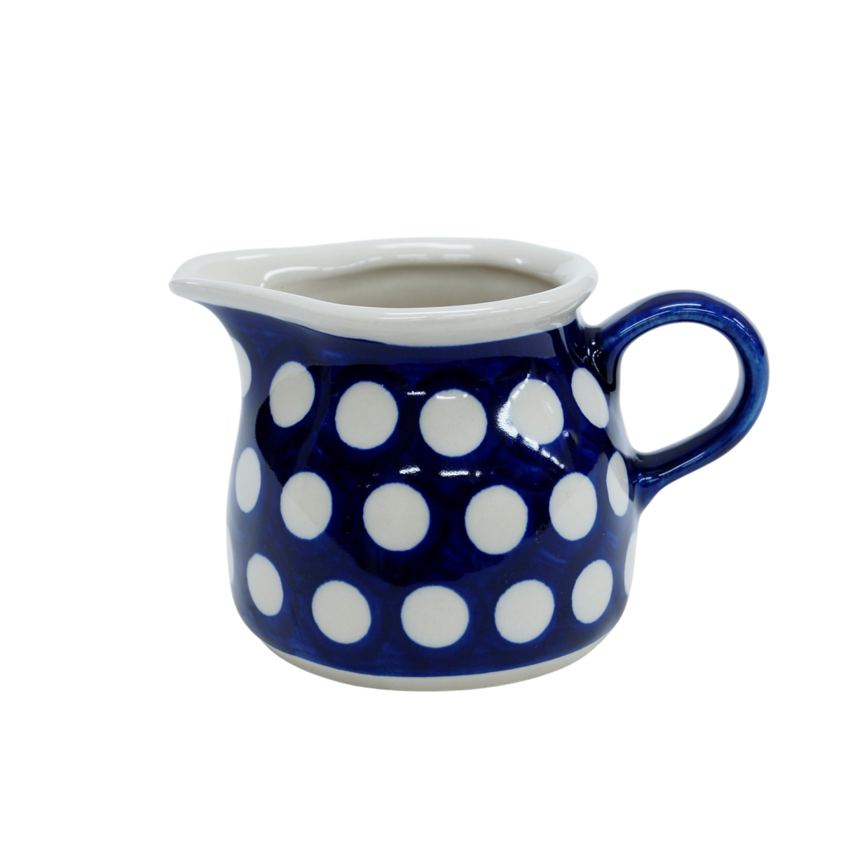 Mlecznik (dzbanek, dzbanuszek) ceramiczny pękaty, ręcznie malowany o pojemności 250 ml, z uchem do wygodnego przenoszenia i dziubkiem do łatwego nalewania mleka.