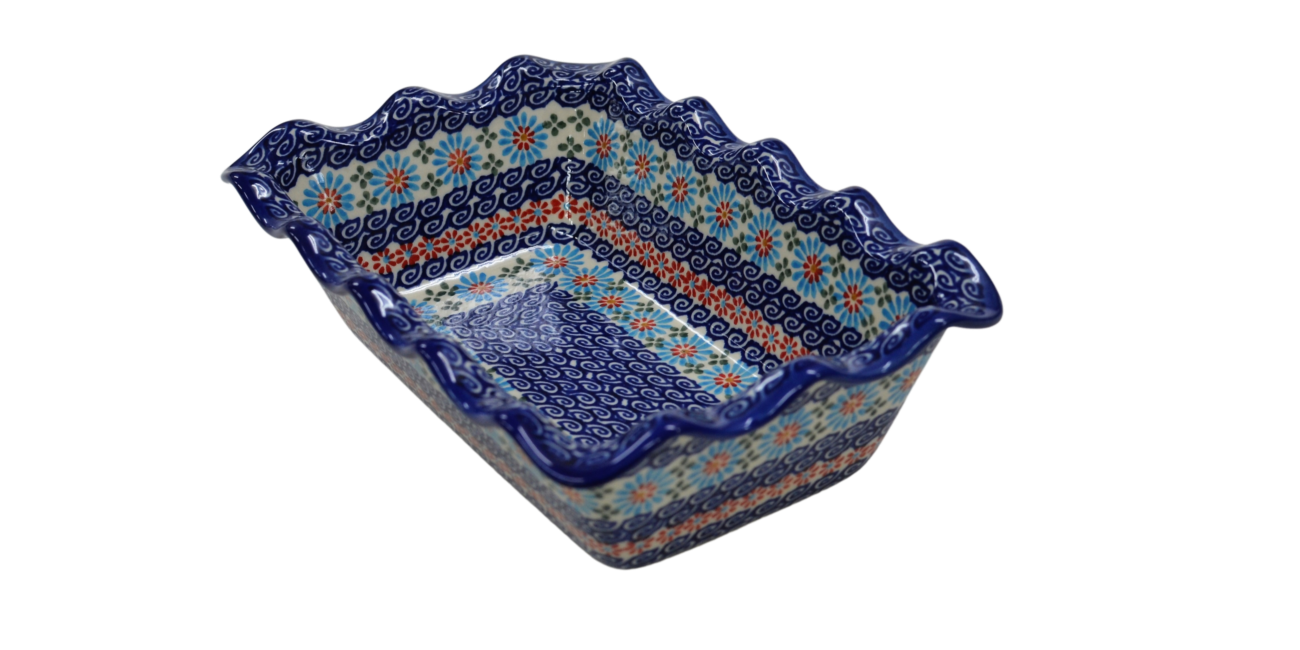 Forma ceramiczna do pieczenia chleba, zapiekania pasztetów jak i przygotowywania pysznych zapiekanek oraz wyrafinowanych dań warzywnych, będzie służyć w Twojej kuchni przez wiele lat. Barwne i oryginalne zdobienia podszkliwne stempelkowe i piękne motywy kwiatowe, nadadzą charakteru serwowanym posiłkom.