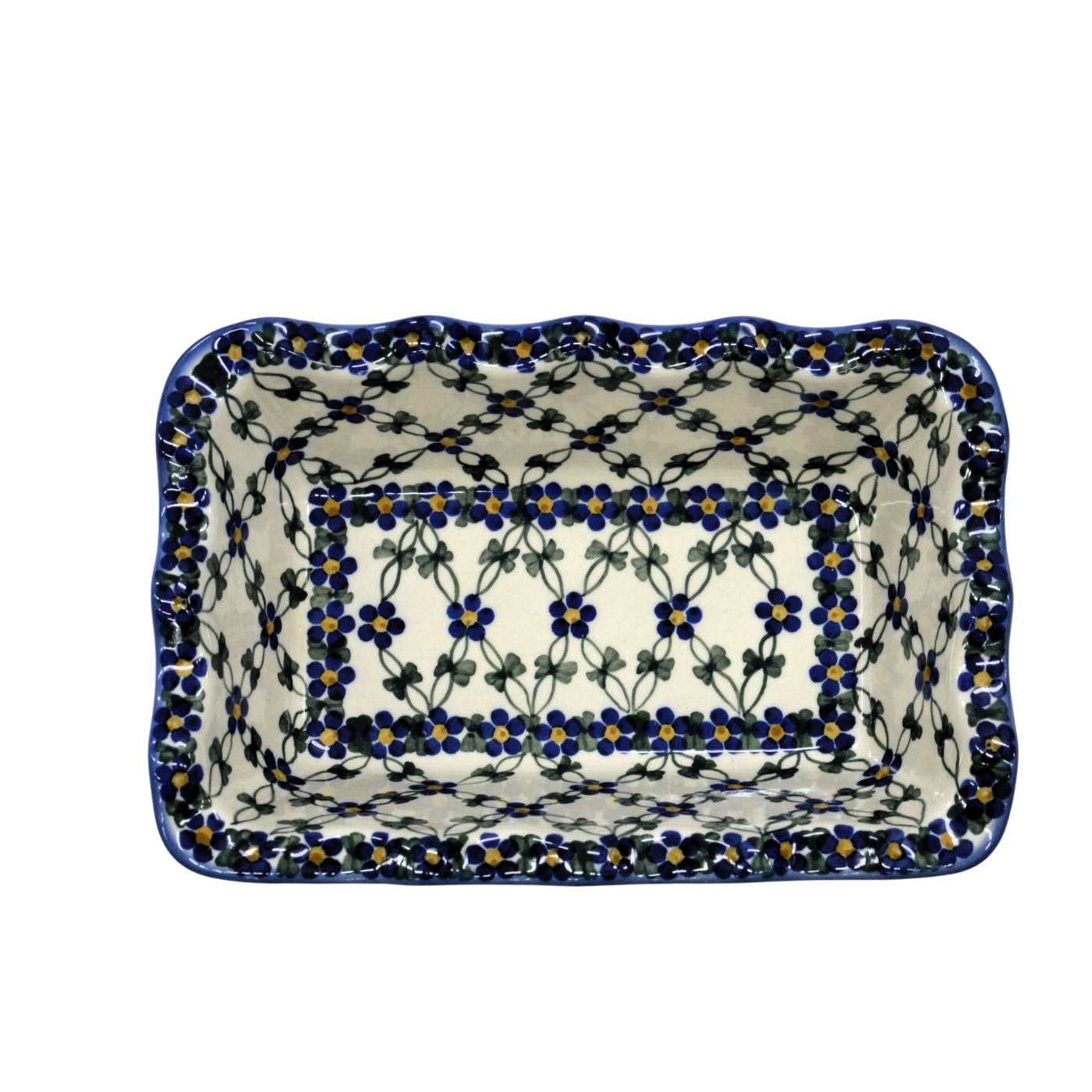 Oryginalny produkt ceramiki bolesławieckiej - ręcznie zdobiona forma ceramiczna do pieczenia chleba i ciast a, pojemności 1 litra , idealna do przygotowywania i zapiekania domowych wypieków, chlebów czy ciast oraz wszelkich pasztetów i potraw mięsnych.