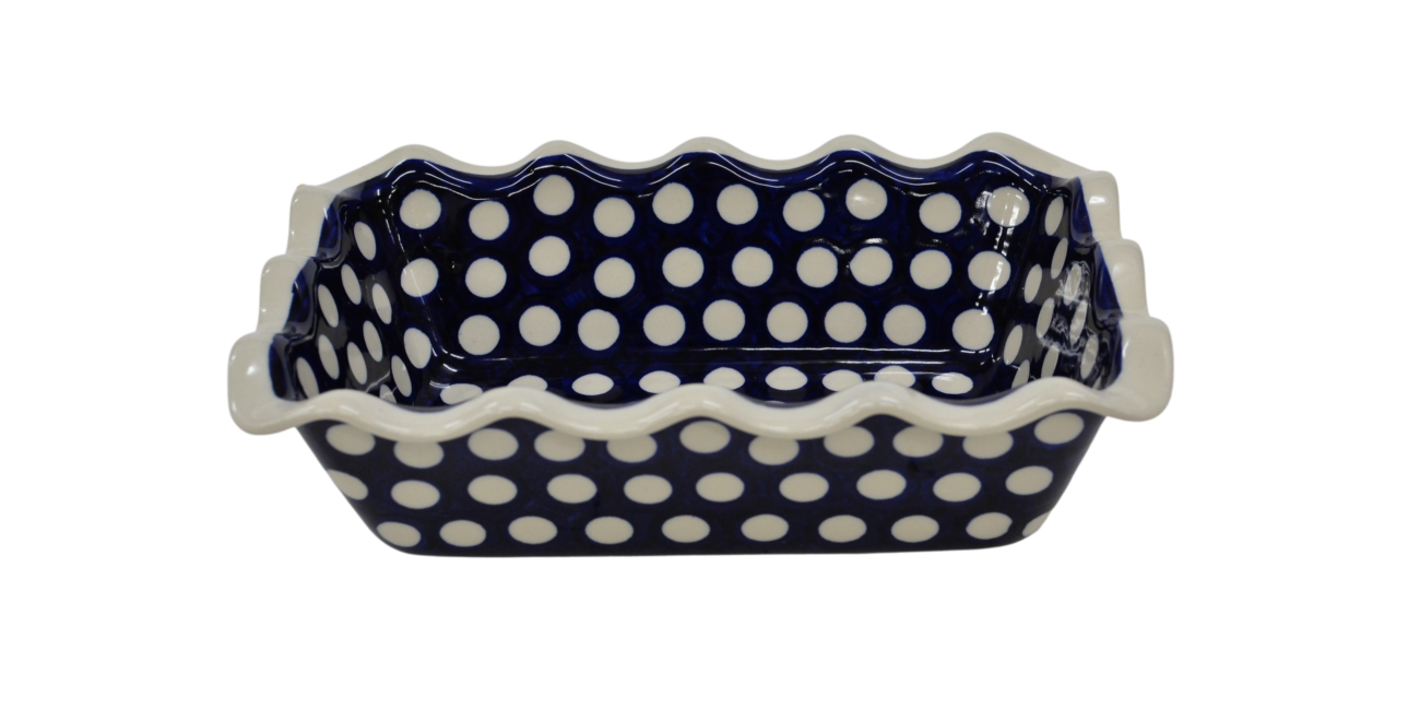Oryginalny produkt ceramiki bolesławieckiej - ręcznie zdobiona forma ceramiczna do pieczenia chleba i ciast a, pojemności 1 litra , idealna do przygotowywania i zapiekania domowych wypieków, chlebów czy ciast oraz wszelkich pasztetów i potraw mięsnych.
