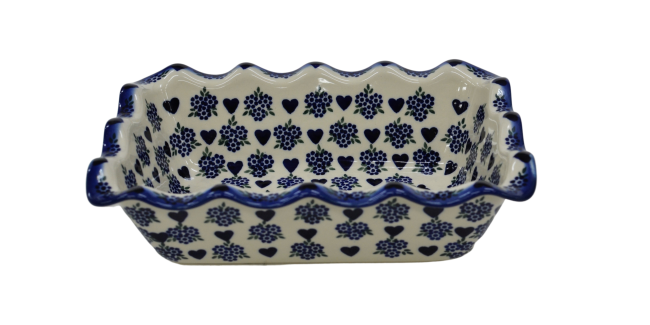 Oryginalny produkt ceramiki bolesławieckiej - ręcznie zdobiona forma ceramiczna do pieczenia chleba i ciast a, pojemności 1 litra , idealna do przygotowywania i zapiekania domowych wypieków, chlebów czy ciast oraz wszelkich pasztetów i potraw mięsnych.