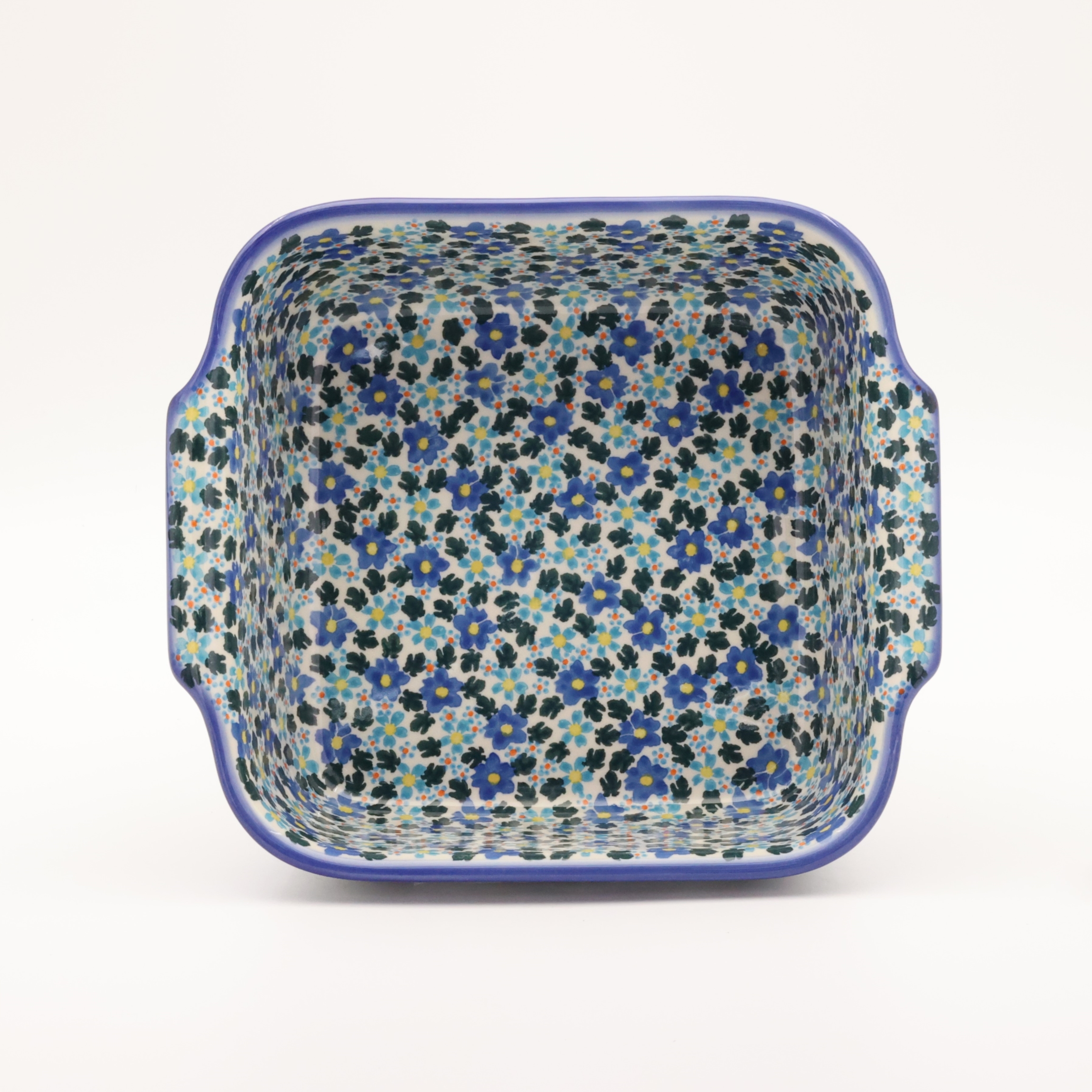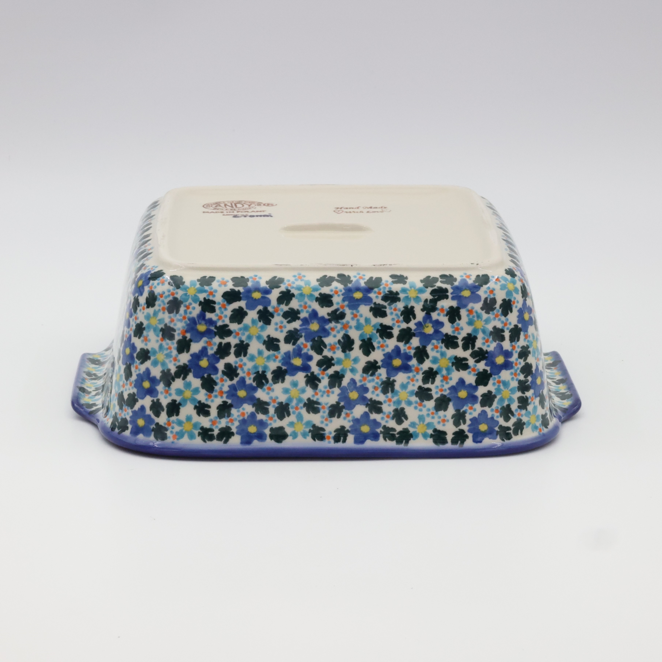 Naczynie kwadratowe duże wzbogaca kolekcję użytkowych naczyń ceramicznych o wszechstronnym zastosowaniu, oryginalna ceramika bolesławiecka, wyprodukowana metodą wytwarzania ceramiki charakterystyczną tylko dla produktów z regionu Bolesławca. Gładka powierzchnia z wytrzymałą powłoką szkliwa i wzmocnionymi krawędziami, odporna na zmywanie w zmywarkach, użytkowanie w mikrofalach i piekarnikach. Ręcznie malowane zdobienia ukryte są pod warstwą przejrzystego szkliwa, która dodaje blasku a przede wszystkim odporności na wysokie temperatury.