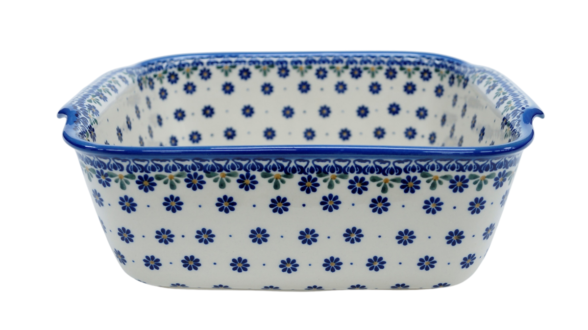 Naczynie kwadratowe duże wzbogaca kolekcję użytkowych naczyń ceramicznych o wszechstronnym zastosowaniu, oryginalna ceramika bolesławiecka, wyprodukowana metodą wytwarzania ceramiki charakterystyczną tylko dla produktów z regionu Bolesławca. Gładka powierzchnia z wytrzymałą powłoką szkliwa i wzmocnionymi krawędziami, odporna na zmywanie w zmywarkach, użytkowanie w mikrofalach i piekarnikach. Ręcznie malowane zdobienia ukryte są pod warstwą przejrzystego szkliwa, która dodaje blasku a przede wszystkim odporności na wysokie temperatury.