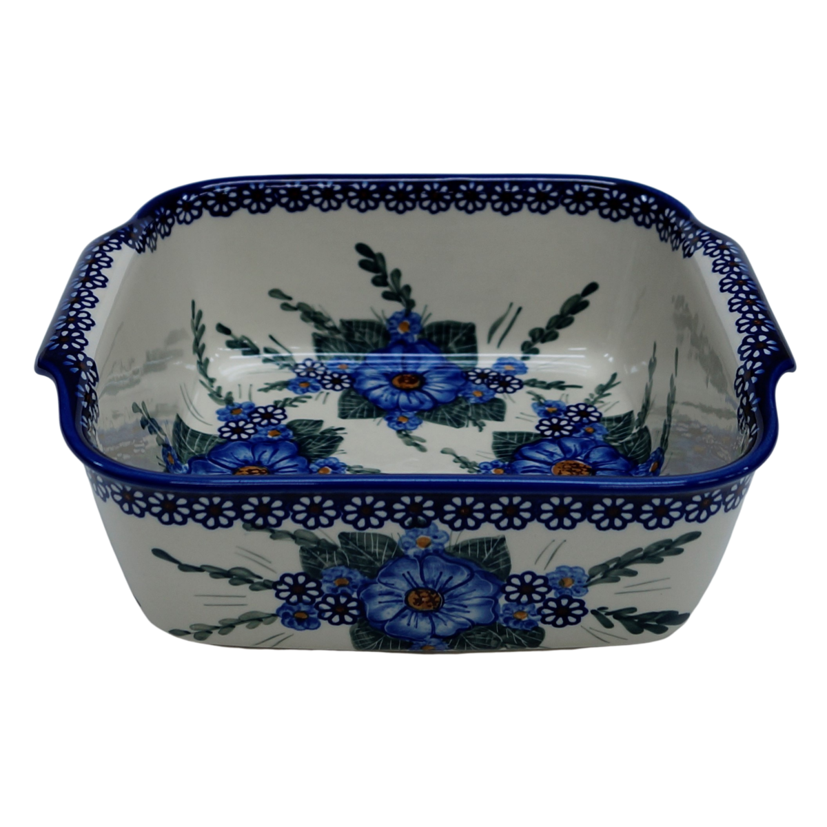 Naczynie kwadratowe duże wzbogaca kolekcję użytkowych naczyń ceramicznych o wszechstronnym zastosowaniu, oryginalna ceramika bolesławiecka, wyprodukowana metodą wytwarzania ceramiki charakterystyczną tylko dla produktów z regionu Bolesławca. Gładka powierzchnia z wytrzymałą powłoką szkliwa i wzmocnionymi krawędziami, odporna na zmywanie w zmywarkach, użytkowanie w mikrofalach i piekarnikach. Ręcznie malowane zdobienia ukryte są pod warstwą przejrzystego szkliwa, która dodaje blasku a przede wszystkim odporności na wysokie temperatury.
