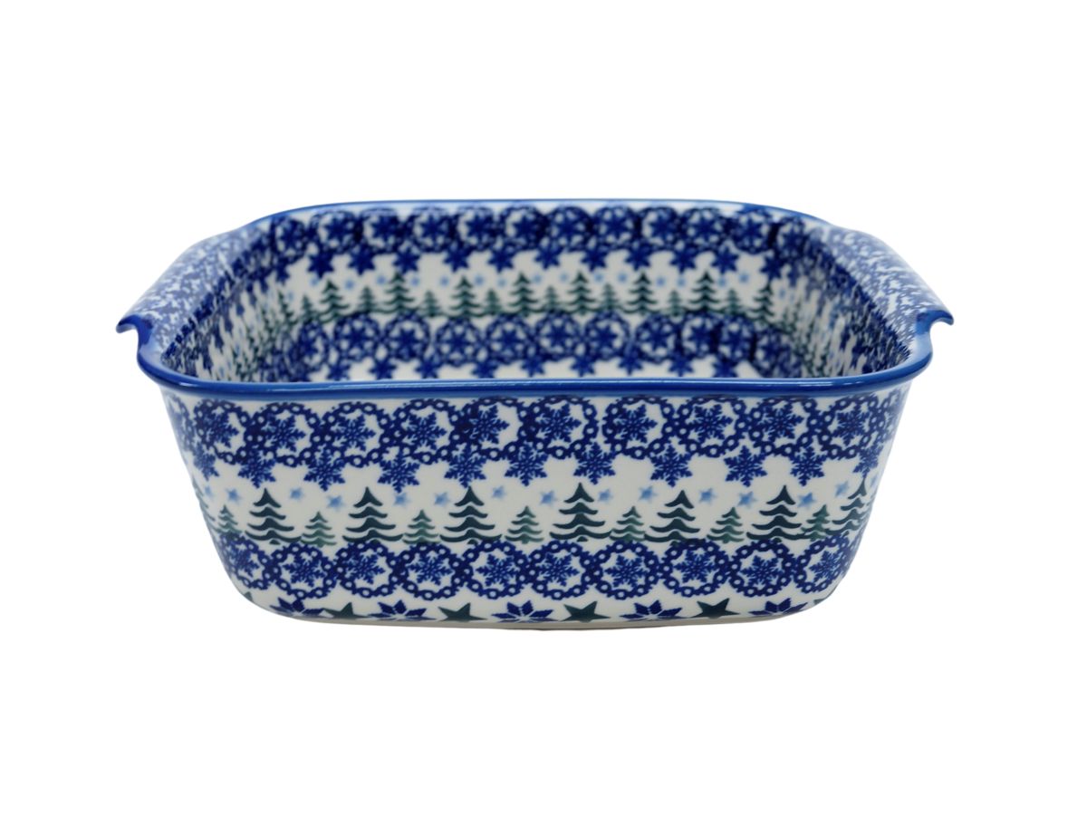 Naczynie kwadratowe duże wzbogaca kolekcję użytkowych naczyń ceramicznych o wszechstronnym zastosowaniu, oryginalna ceramika bolesławiecka, wyprodukowana metodą wytwarzania ceramiki charakterystyczną tylko dla produktów z regionu Bolesławca. Gładka powierzchnia z wytrzymałą powłoką szkliwa i wzmocnionymi krawędziami, odporna na zmywanie w zmywarkach, użytkowanie w mikrofalach i piekarnikach. Ręcznie malowane zdobienia ukryte są pod warstwą przejrzystego szkliwa, która dodaje blasku a przede wszystkim odporności na wysokie temperatury.