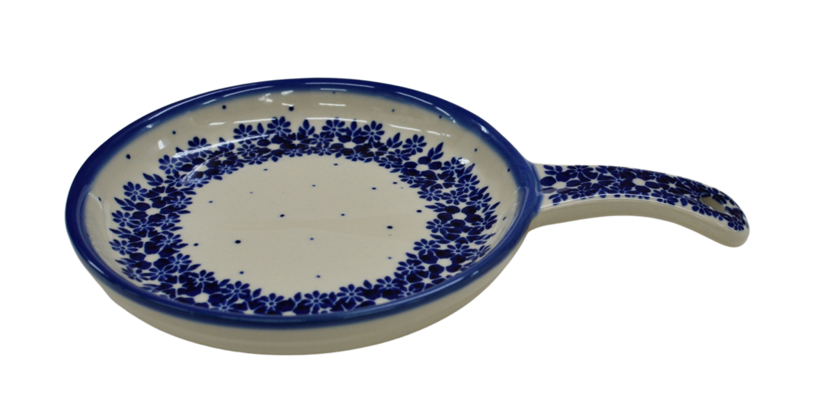 Ceramiczna patelnia duża, wymalowana w tradycyjne bolesławieckie wzory. Naczynie służące do podawania jajecznicy, jajek sadzonych, sałatek, surówek czy świeżo upieczonych kiełbasek lub tostów z serem i szynką.