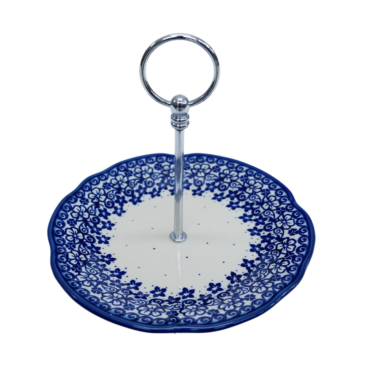 Patera (etażerka) wzbogaci artystyczne nakrycie stołu i pięknie wyeksponuje najsłodszy deser. Patera jest łatwa w przenoszeniu i ustawianiu w dowolnie wybranym miejscu dzięki uchwytowi ze stali nierdzewnej. Ciastka, desery, owoce, ciasteczka czy torty podane na bolesławieckim naczyniu zachwycą Twoich gości.