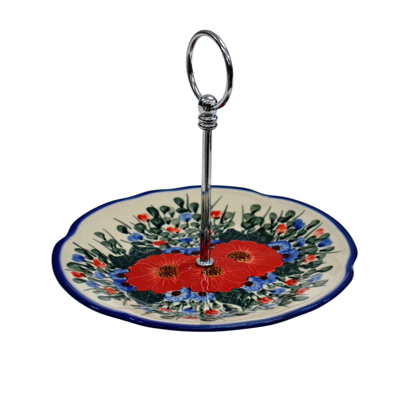 Patera (etażerka) wzbogaci artystyczne nakrycie stołu i pięknie wyeksponuje najsłodszy deser. Patera jest łatwa w przenoszeniu i ustawianiu w dowolnie wybranym miejscu dzięki uchwytowi ze stali nierdzewnej. Ciastka, desery, owoce, ciasteczka czy torty podane na bolesławieckim naczyniu zachwycą Twoich gości.