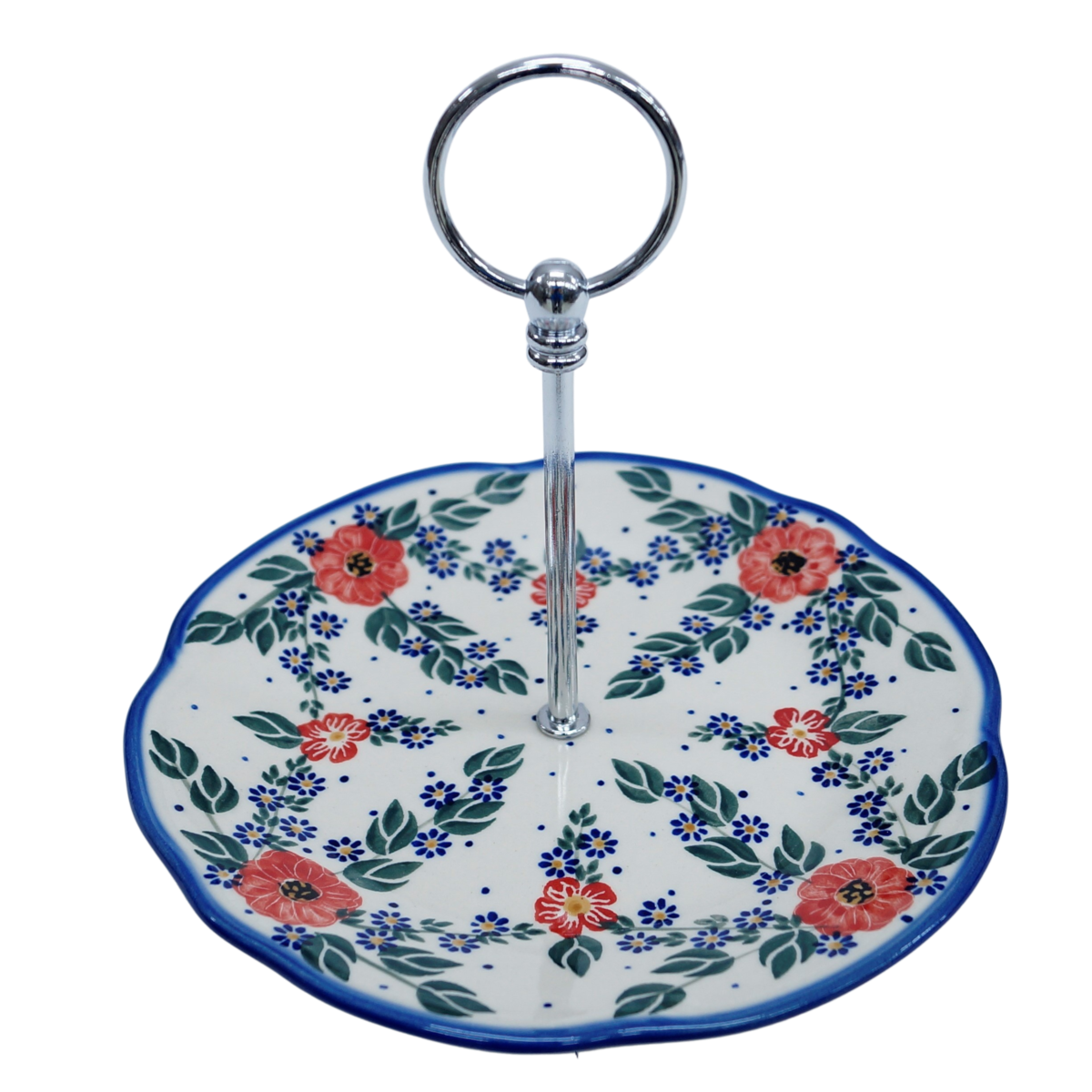 Patera (etażerka) wzbogaci artystyczne nakrycie stołu i pięknie wyeksponuje najsłodszy deser. Patera jest łatwa w przenoszeniu i ustawianiu w dowolnie wybranym miejscu dzięki uchwytowi ze stali nierdzewnej. Ciastka, desery, owoce, ciasteczka czy torty podane na bolesławieckim naczyniu zachwycą Twoich gości.