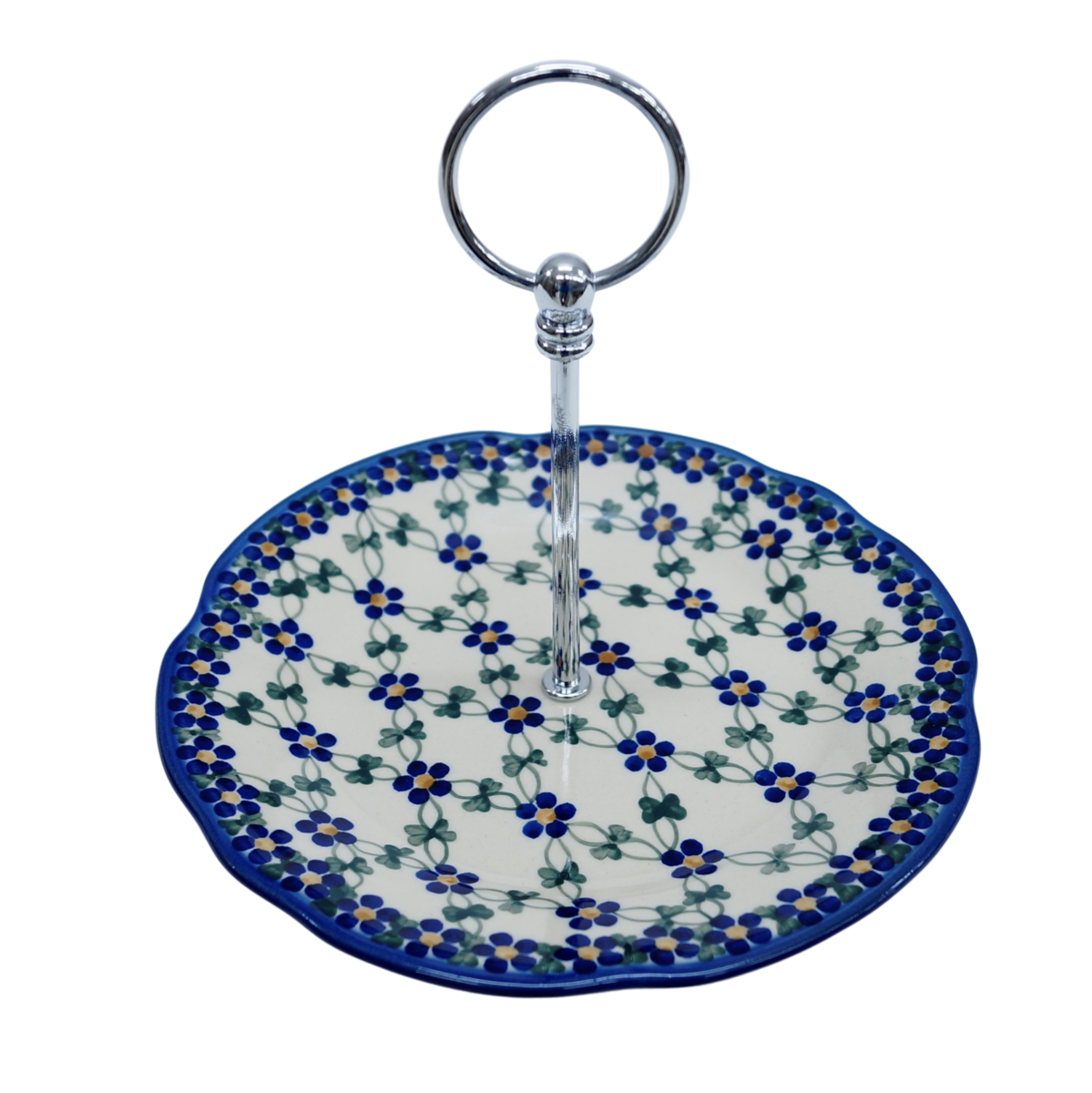 Patera (etażerka) wzbogaci artystyczne nakrycie stołu i pięknie wyeksponuje najsłodszy deser. Patera jest łatwa w przenoszeniu i ustawianiu w dowolnie wybranym miejscu dzięki uchwytowi ze stali nierdzewnej. Ciastka, desery, owoce, ciasteczka czy torty podane na bolesławieckim naczyniu zachwycą Twoich gości.
