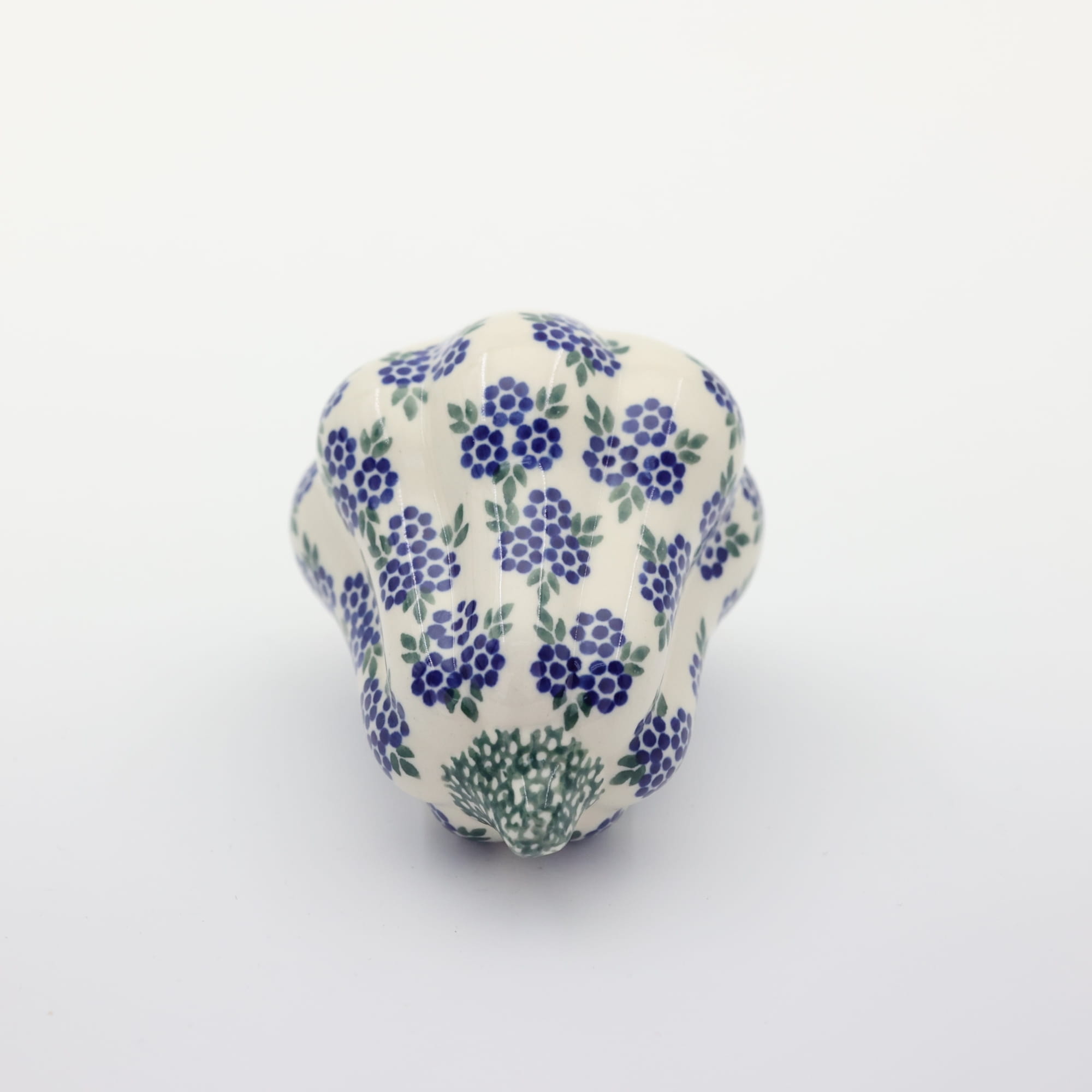 Ozdobny patison ceramiczny o wysokości 10,1 cm, ręcznie malowana ceramika bolesławiecka to doskonały element dekoracyjny do każdego ogrodu, tarasu lub wnętrza Twojego domu.