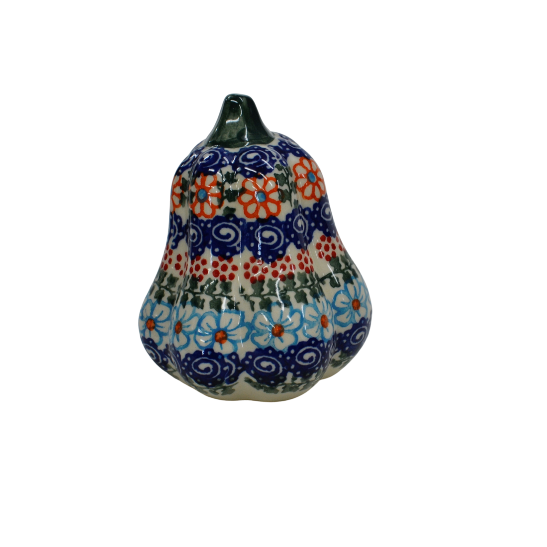 Ozdobny patison ceramiczny o wysokości 10,1 cm, ręcznie malowana ceramika bolesławiecka to doskonały element dekoracyjny do każdego ogrodu, tarasu lub wnętrza Twojego domu.