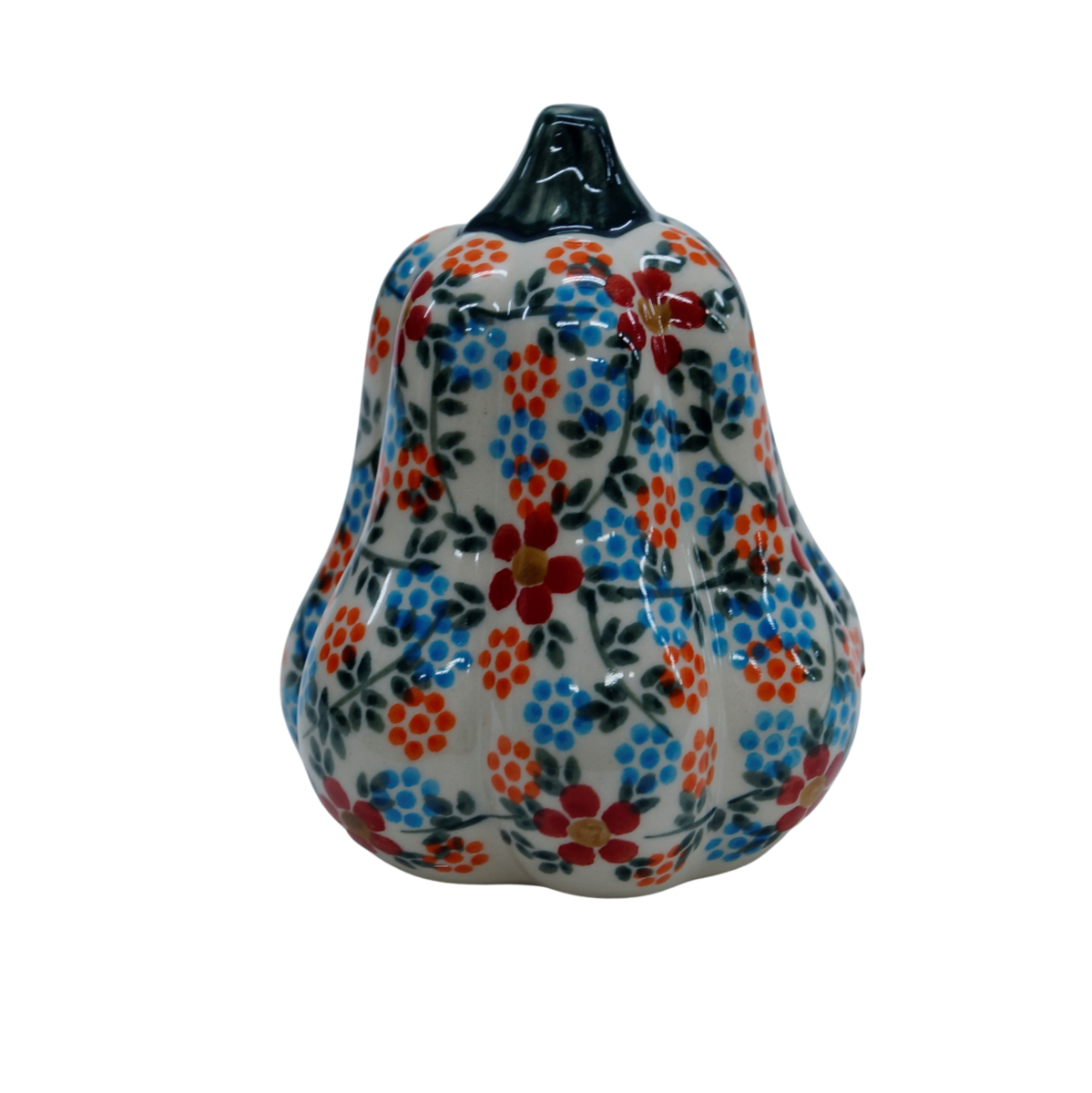 Ozdobny patison ceramiczny o wysokości 10,1 cm, ręcznie malowana ceramika bolesławiecka to doskonały element dekoracyjny do każdego ogrodu, tarasu lub wnętrza Twojego domu.