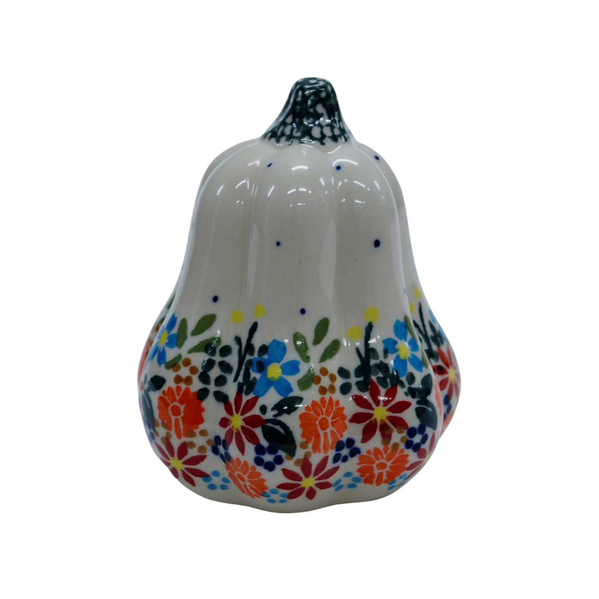 Ozdobny patison ceramiczny o wysokości 10,1 cm, ręcznie malowana ceramika bolesławiecka to doskonały element dekoracyjny do każdego ogrodu, tarasu lub wnętrza Twojego domu.