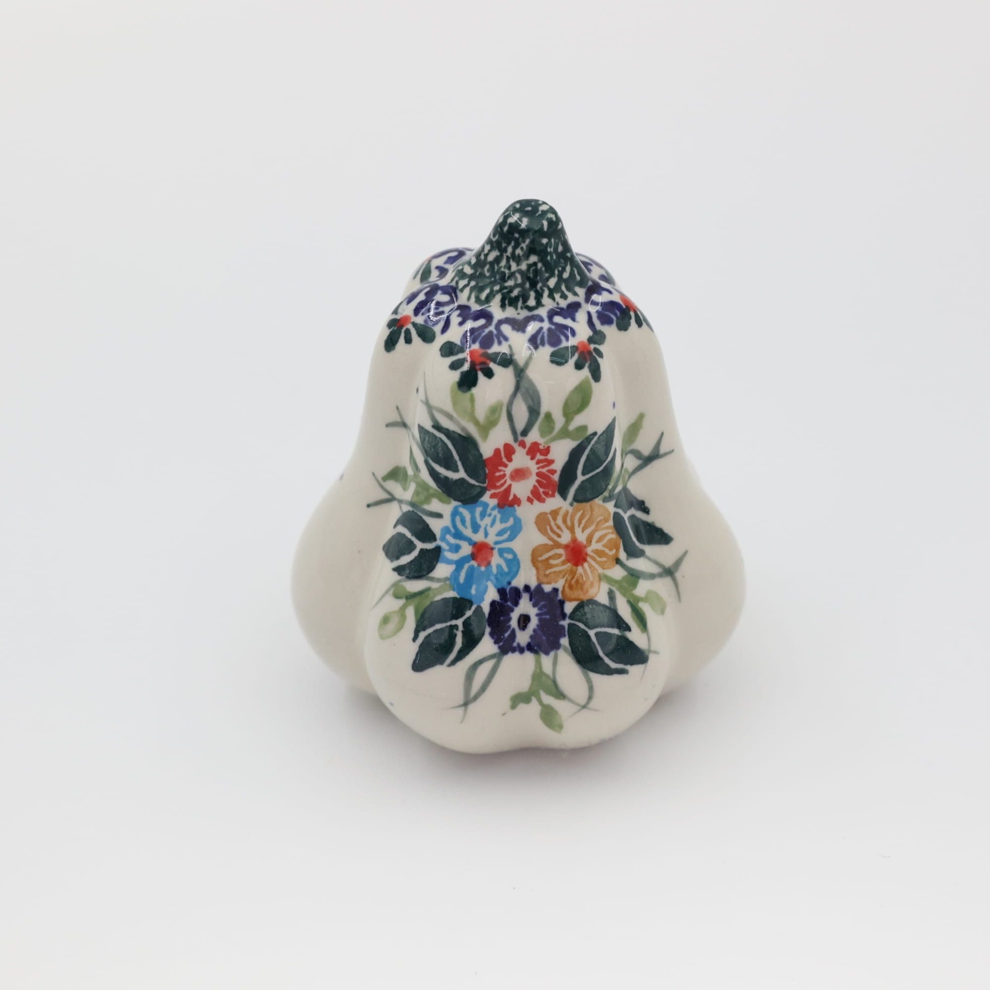 Ozdobny patison ceramiczny o wysokości 10,1 cm, ręcznie malowana ceramika bolesławiecka to doskonały element dekoracyjny do każdego ogrodu, tarasu lub wnętrza Twojego domu.