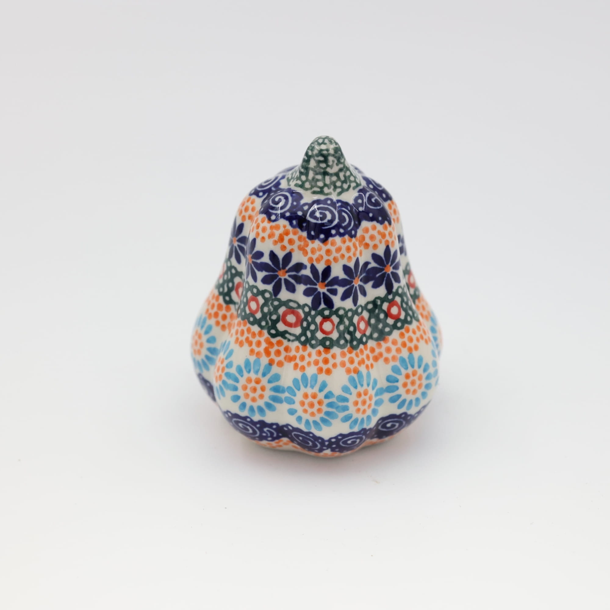 Ozdobny patison ceramiczny o wysokości 10,1 cm, ręcznie malowana ceramika bolesławiecka to doskonały element dekoracyjny do każdego ogrodu, tarasu lub wnętrza Twojego domu.