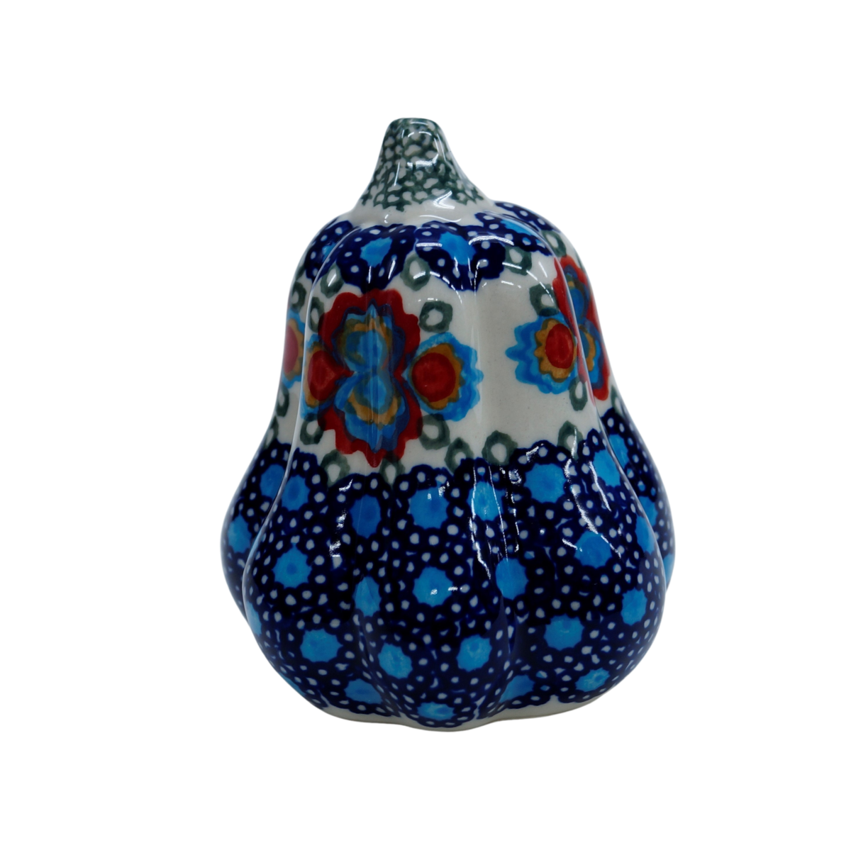 Ozdobny patison ceramiczny o wysokości 10,1 cm, ręcznie malowana ceramika bolesławiecka to doskonały element dekoracyjny do każdego ogrodu, tarasu lub wnętrza Twojego domu.