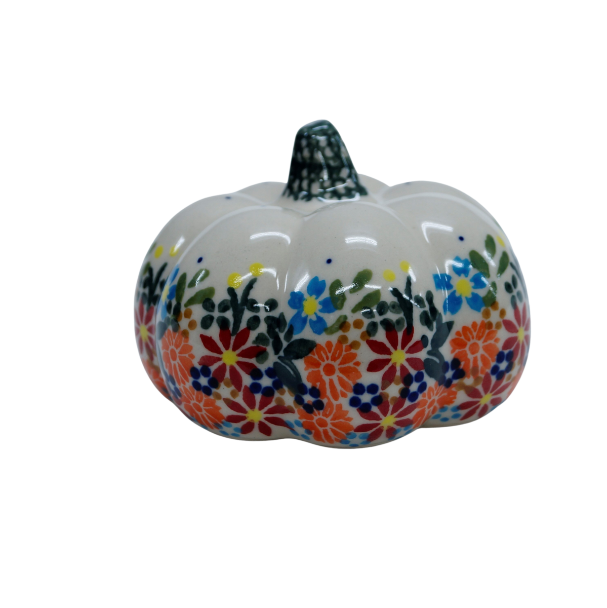 Ozdobny patison ceramiczny o wysokości 7cm, ręcznie malowana ceramika bolesławiecka to doskonały element dekoracyjny do każdego ogrodu, tarasu lub wnętrza Twojego domu.