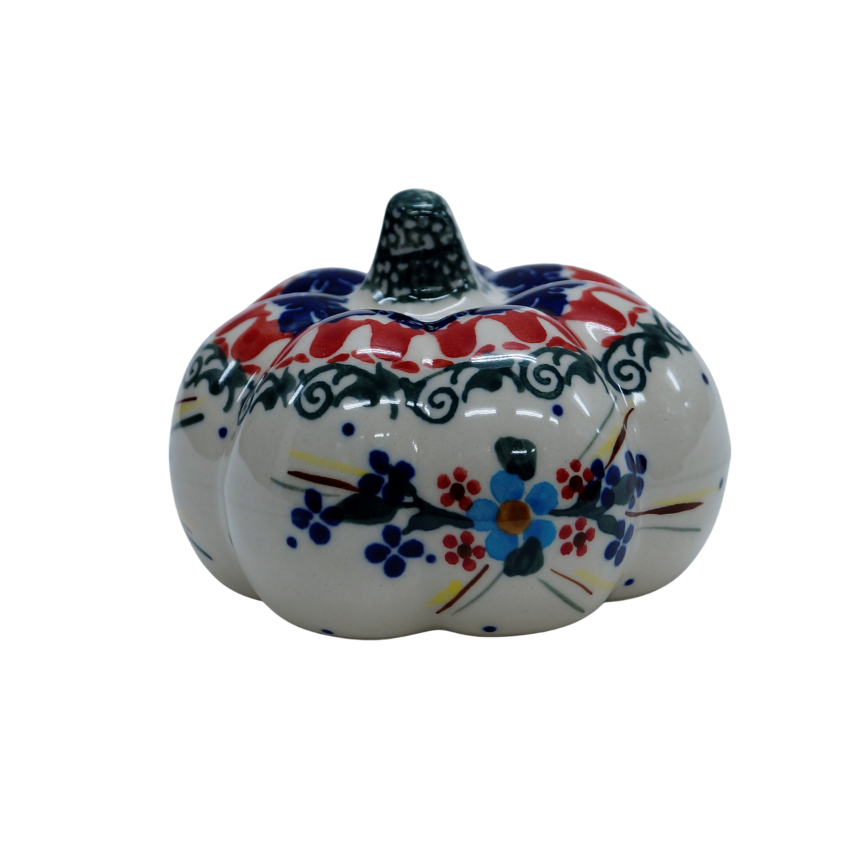 Ozdobny patison ceramiczny o wysokości 7cm, ręcznie malowana ceramika bolesławiecka to doskonały element dekoracyjny do każdego ogrodu, tarasu lub wnętrza Twojego domu.